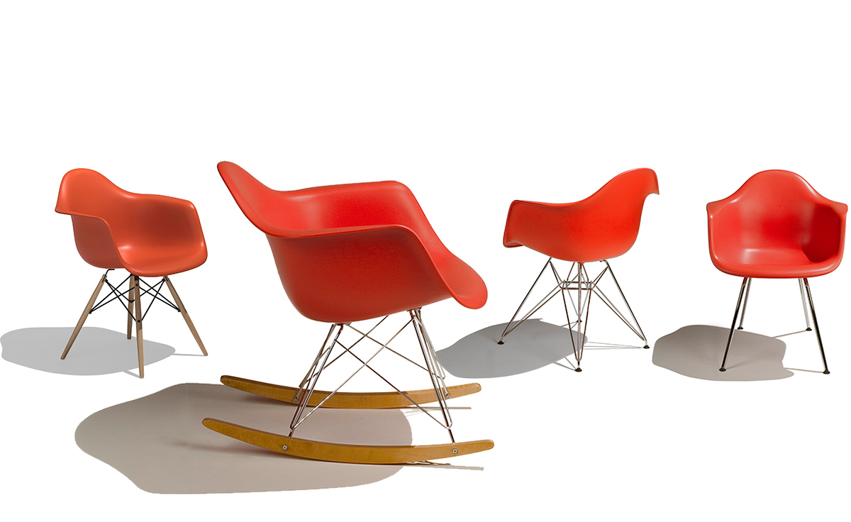 本单品为Eames Plastic Chair 系列成员之一,舒适的椅座外观设计是以添加了玻璃纤维强化的塑料来制作,再搭配上各式不同的脚座来增添使用的多样化,值得一提的是Eames Plastic Chair 的创新技术与材质,便它得以成为全世界第一张被大量制造的单椅。拜现今创新的科技所赐,全系列的Eames Plastic chair 终于再次制造,使用环保可回收的聚丙烯材质,求制作线条优美的椅座外壳,不但重量更轻,同时更具有更好的耐热性及抗化学性。