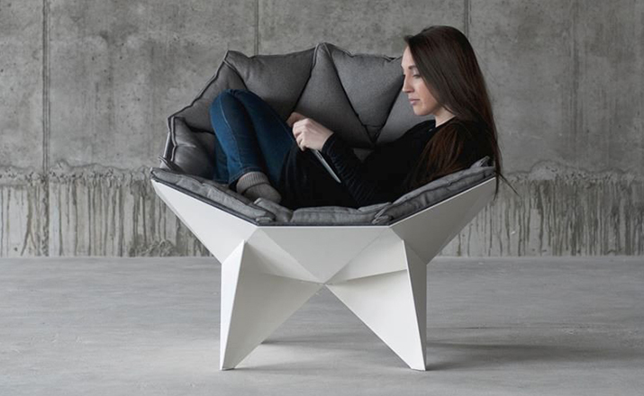 由乌克兰设计师Zbroy Svyatoslav和Dmitry Bulgakov合作创办的设计工作室ODESD2设计的Q1 lounge chair(Q1 躺椅)。半球形构思基于巴克敏斯特·福勒(美国哲学家、建筑师和艺术家)球型屋顶设计,这种类似球型穹顶的构造承重能力更大,而且凌厉的线条与舒适的内饰,相得益彰。