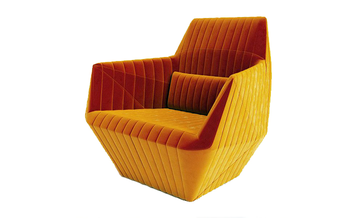 Facett沙发来自写意空间的设计师Bouroullec兄弟,其设计灵感来自于充满童趣的折纸游戏,所以我们能看到产品的造型具有几何色彩,丰富的折线仿佛随时会变出一个个多边形,给人意想不到的乐趣。写意空间Facett沙发不像多数布艺沙发那样走柔美温和路线,它刚毅硬朗的线条仿佛是轮廓分明的男子,给人坚毅的感觉。无论是暗灰还是明黄,冷色还是暖色,都传递出冷冽的质感。搭配在黑白空间里,是最合适的选择。除了造型,Facett沙发采用的布料也很特别,并没有追求植绒的细腻和棉布的柔软,进口布艺充满立体感,非常符合沙发造型的设计理念。家里摆放这么一款家具,即使不使用,单纯用来欣赏也是值得的。
