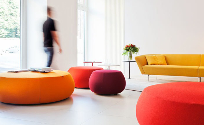 Pix Pouf系列家庭垫脚软凳由日本设计师Established Iwasaki设计的。形象的轮廓、柔和的色彩运用,饱满的外观,防霉实木内框架或玻璃钢内胆、高密度海绵、进口布艺或皮革(颜色可选)。可适合于不同大小的空间,如会议室、 会议活动的多功能厅,亦或是教室和放松的休闲区,还有家庭使用。这系列有四种尺寸大小 (67,87,137 和 177 厘米直径) 。无论室内外都非常合适,让劳累一天的双脚得到无限的放松。