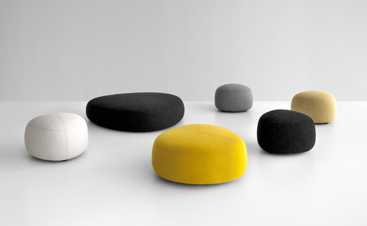Kipu Pouf(Kipu 墩)的设计来着两个年轻的挪威设计师Torbjorn Anderssen和Espen Voll,灵感来自自然元素,被河水打磨的光滑鹅卵石,这就产生了三角形装卵石样的Kipu 墩。制作采用防霉实木框架、玻璃钢内胆、高密度海绵、高级布艺或皮革(颜色多选),软化所选择的颜色和面料,缝线细致的相交缝制,给人正式又休闲的感觉。其实用性非常广,可用于工作场所、非正式会议区、等候区、图书馆,也可以用在住宅项目,仿若舒适的"孤岛",可以不同高度、数量自由组合,即便不用来坐,单纯用来做艺术摆设都是非常高档的。