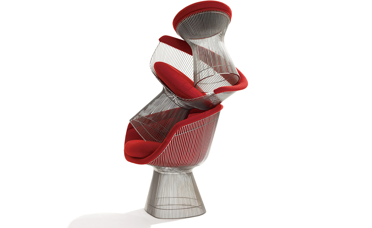 1966年榮獲 American Institute of Architects International Award 美國建築協會國際大獎的 Platner Chair,在設計師 Warren Platner 的創意下,將鋼絲雕塑轉化成一系列收藏級的傢俱,創造了現在被認為是當今時代的設計圖標。