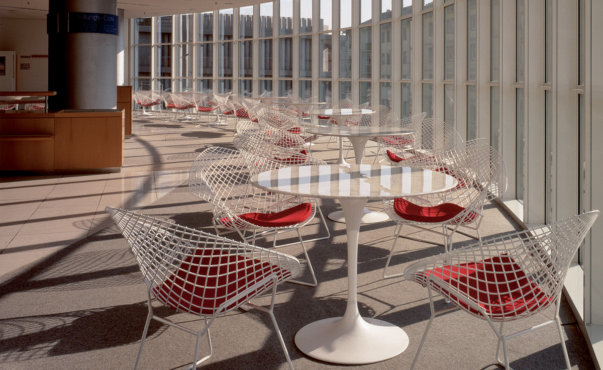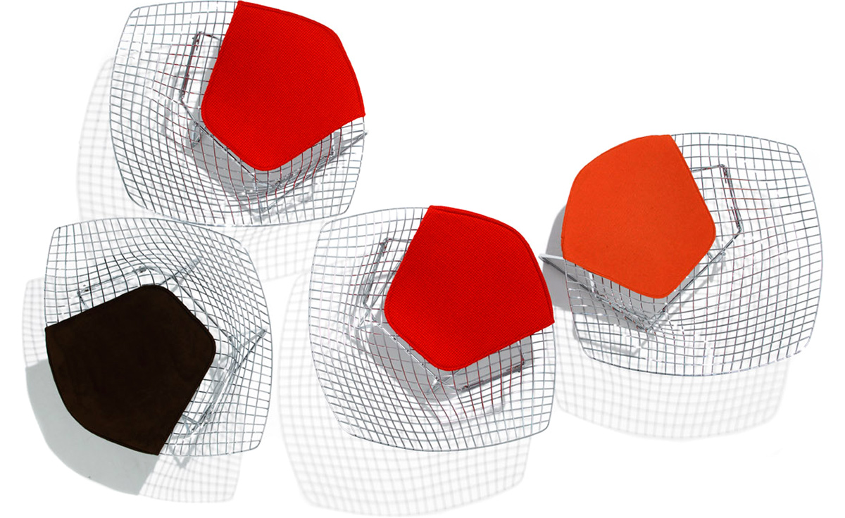 Bertoia Diamond Chair 是 Harry Bertoia 延伸其珠寶設計與金屬製作概念的一件兼顧實用與藝術的作品,精緻的外觀下,卻不失椅子功能上的舒適及耐用性