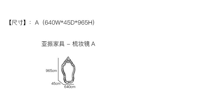 亚振家具 - 梳妆镜 产品尺寸/示意图