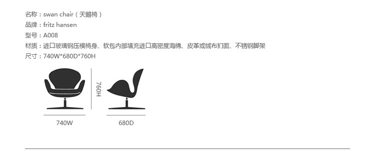 Swan Chair(天鹅椅)是由丹麦著名建筑师ArneJacobsen(安恩 · 雅各布森)设计的.他是本世纪最具影响力的北欧建筑师暨工业设计大师,是『丹麦功能主义』的倡导人.同时在家具、灯饰、衣料以及各式各样的应用艺术上皆有深切琢磨与成就,并成为享誉国际的传奇人物.