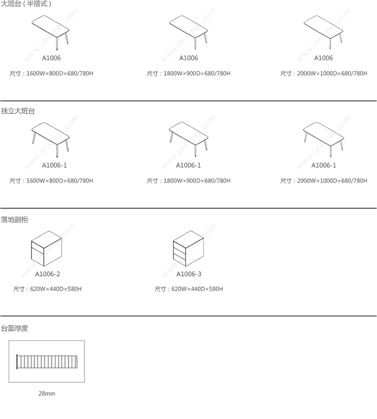 KEYPIECE MANAGEMENT DESK. 系列尺寸/示意图