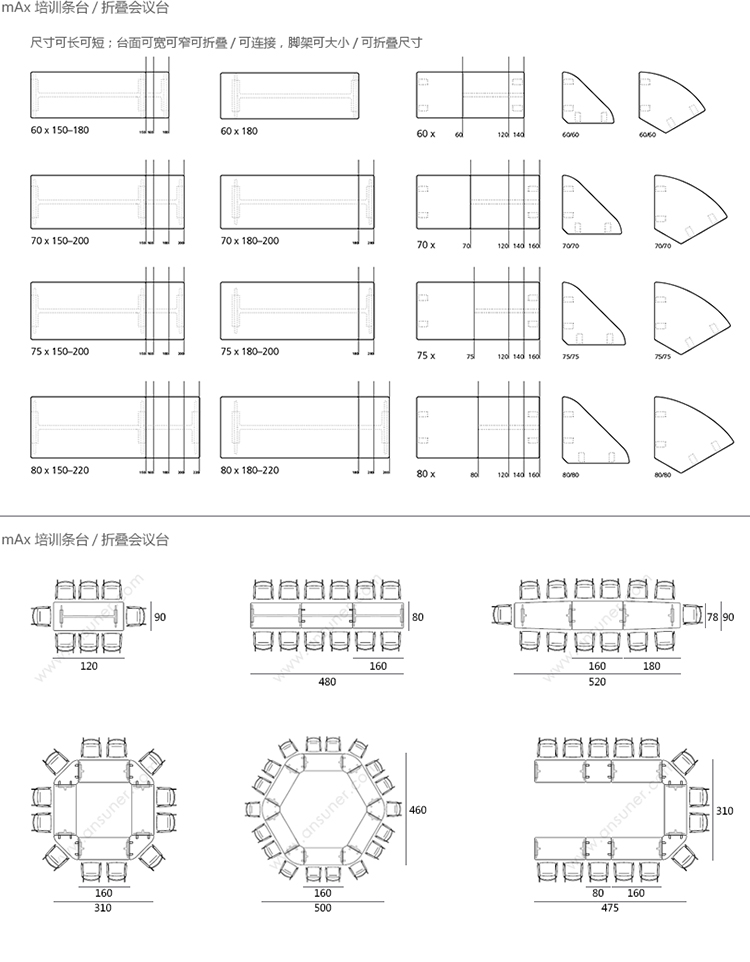 mAx 多功能折叠培训桌 系列尺寸/示意图
