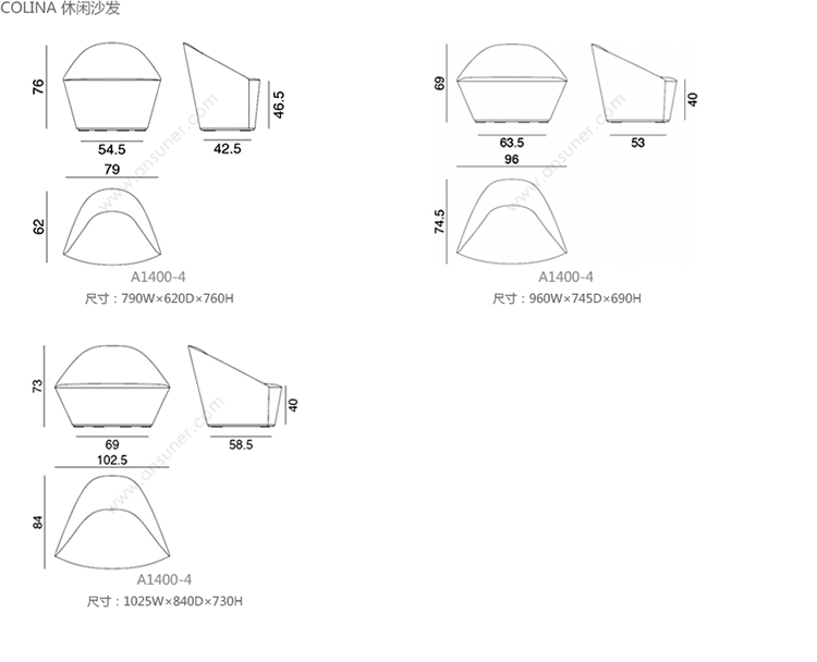 Colina 休闲沙发 系列尺寸/示意图