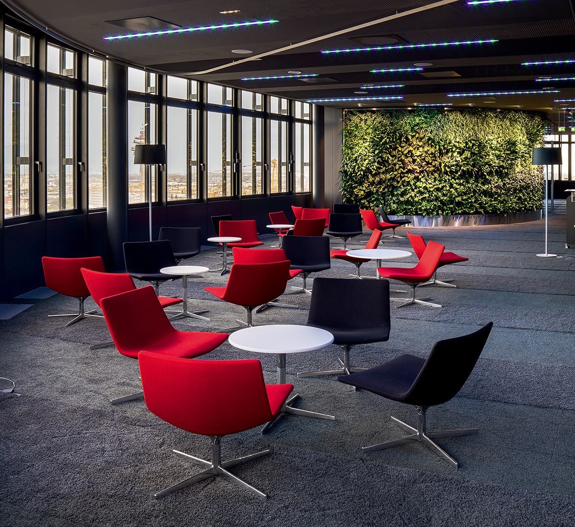 有四种高度(36.4,50,74和105厘米)可供选择,圆形和方形顶部有各种尺寸。 四星级底座采用闪亮或白色涂层铝制成。