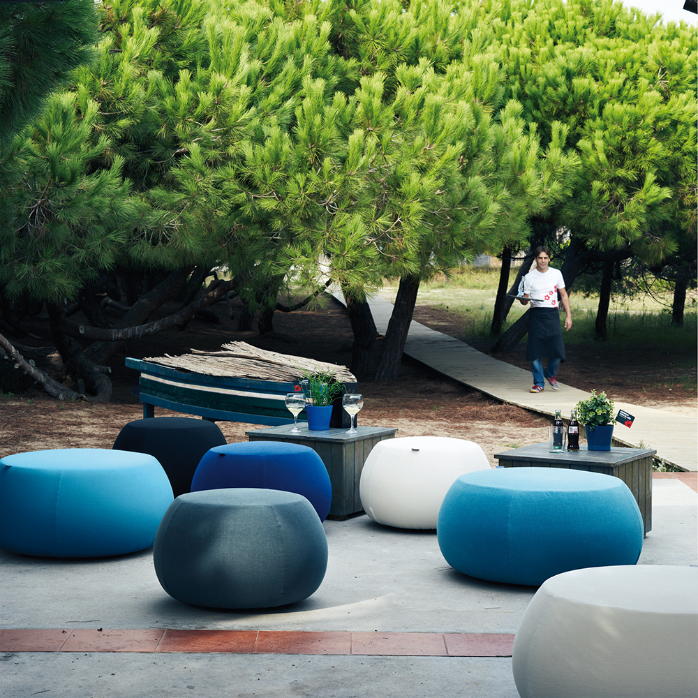 Pix Pouf系列家庭垫脚软凳由日本设计师Ichiro Iwasaki、设计的。形象的轮廓、柔和的色彩运用,饱满的外观,防霉实木内框架或玻璃钢内胆、高密度海绵、进口布艺或皮革(颜色可选)。可适合于不同大小的空间,如会议室、 会议活动的多功能厅,亦或是教室和放松的休闲区,还有家庭使用。这系列有四种尺寸大小 (67,87,137 和 177 厘米直径) 。无论室内外都非常合适,让劳累一天的双脚得到无限的放松。