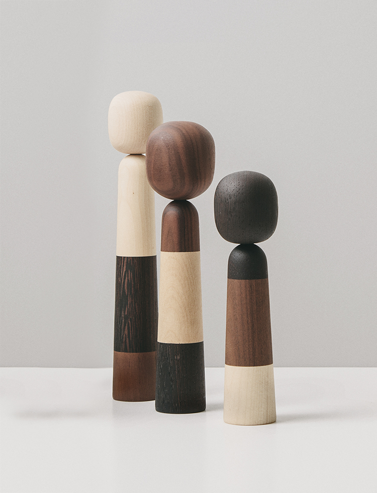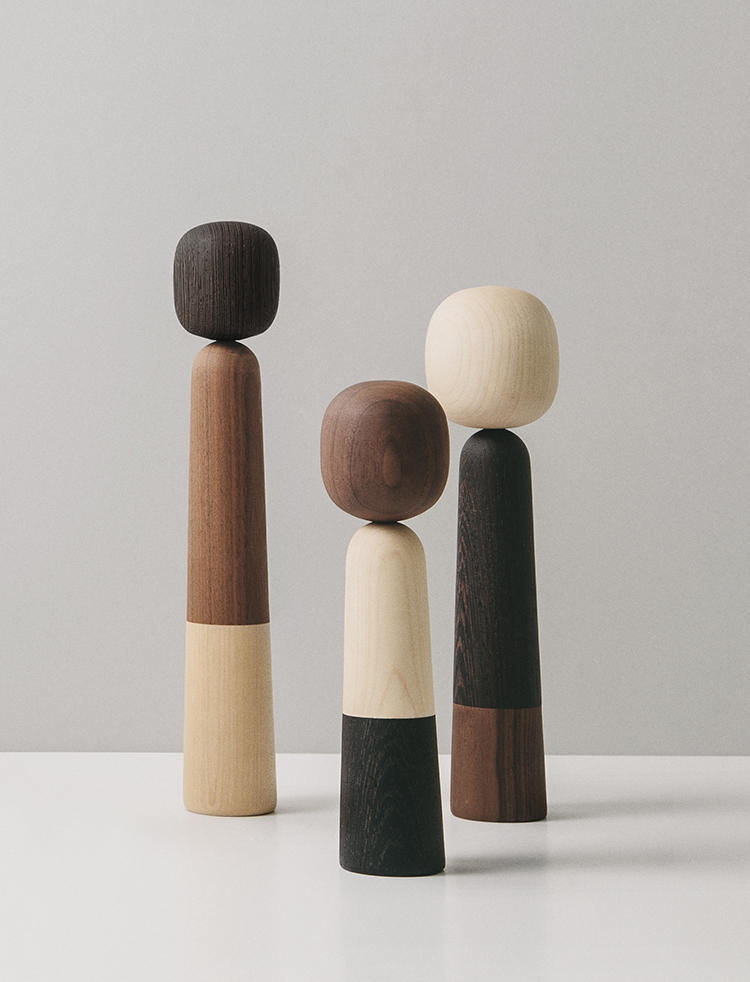 家庭的本质是视觉主题的变体,将其成员联系在一起; 它意味着多样性的统一。 我们家庭的每个成员都是以三种木材的不同组合制作的,可以是个人,一对,三人或九个或更多的大家庭。