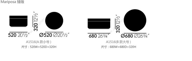 Mariposa 矮墩 系列尺寸/示意图