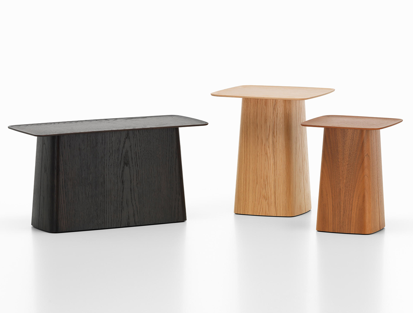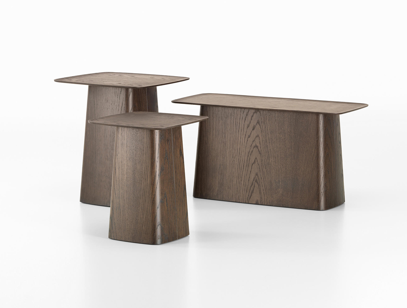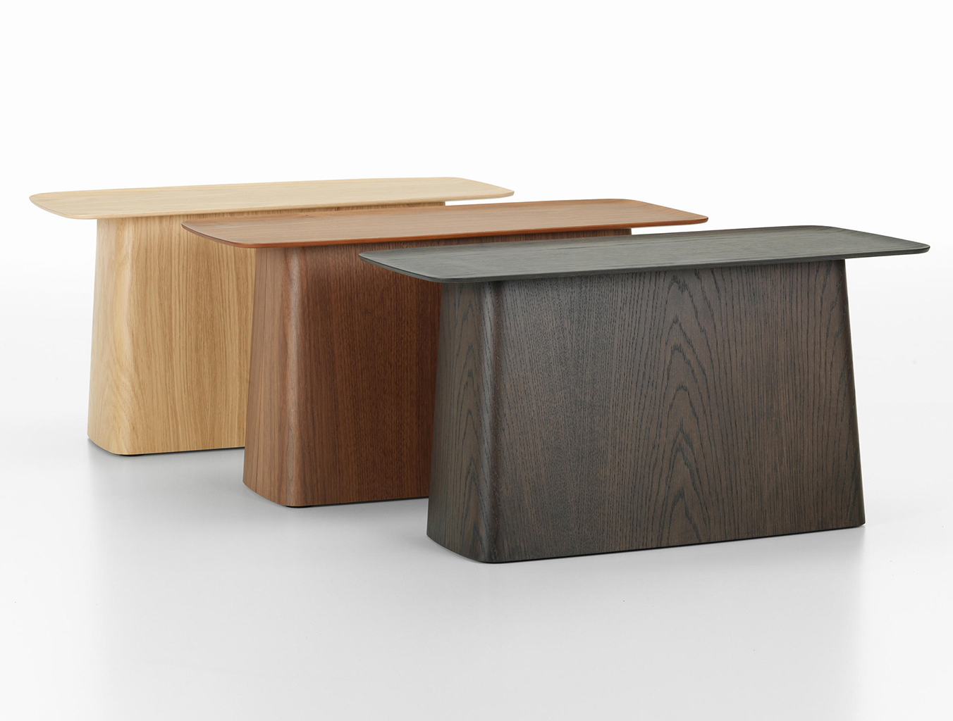 Ronan和Erwan Bouroullec的木制侧桌的细长顶部有一个轻微弯曲的唇部,使它们看起来优雅,几乎是日本风格。 轻便的偶尔桌子有三种尺寸,天然橡木,深色橡木或胡桃木贴面。