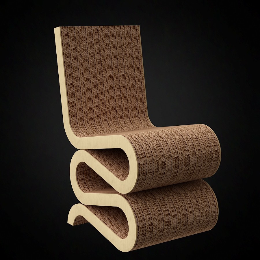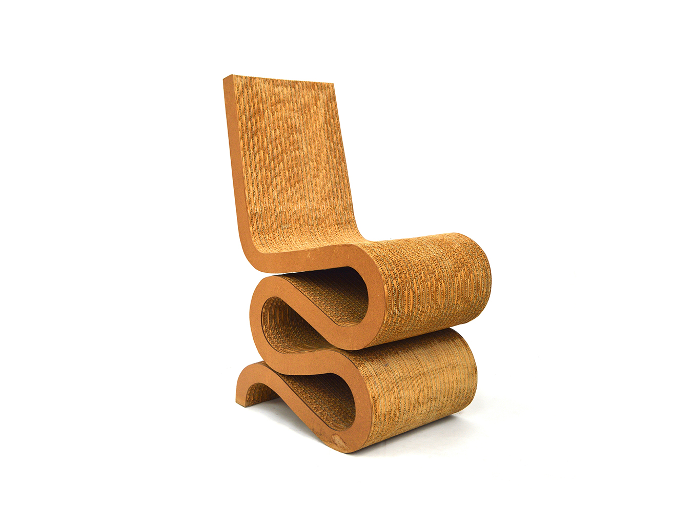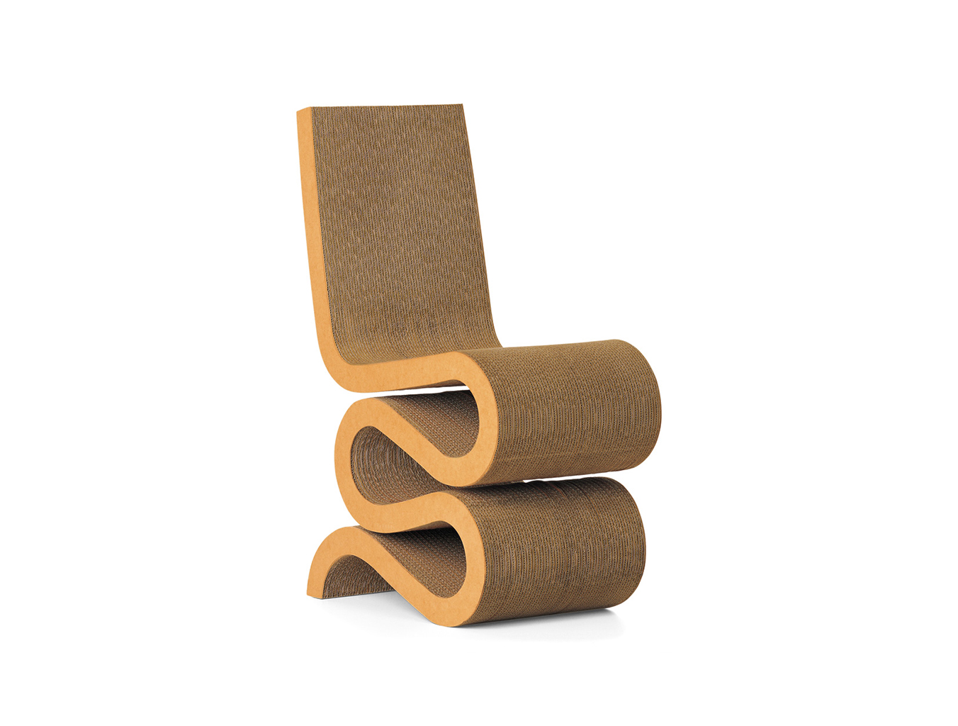 The architect Frank Gehry is known for his use of unusual materials. With his furniture series 'Easy Edges', he succeeded in bringing a new aesthetic dimension to such an everyday material as cardboard.