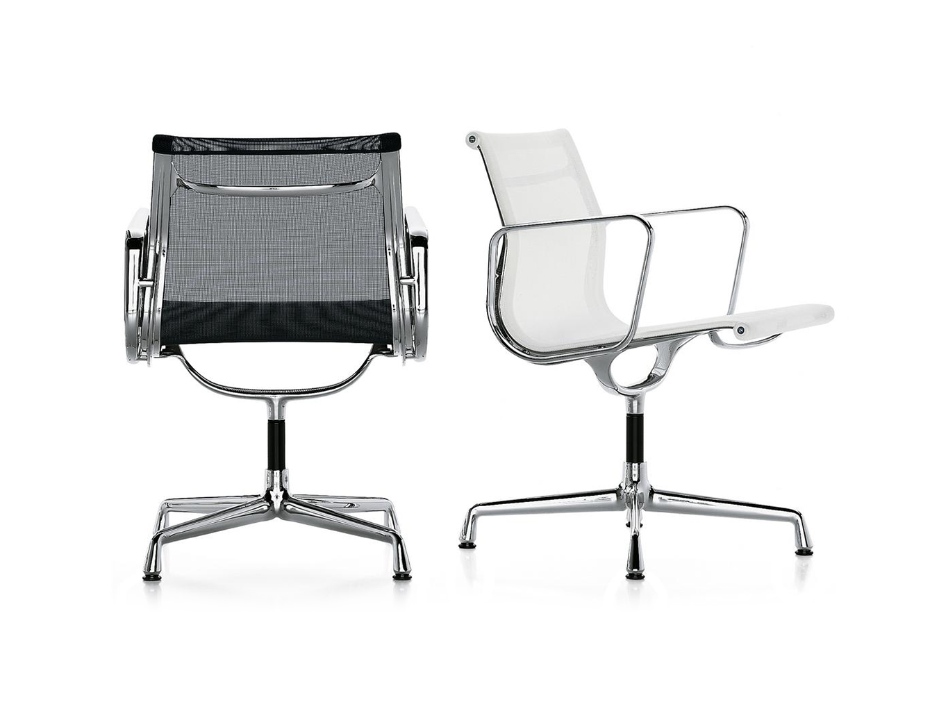 Charles和Ray Eames的铝椅EA 101,EA 103和EA 104非常适合与桌子组合使用:与铝组的其他型号相比,它们更轻,更高,更窄。 由于室内装潢具有多种柔和鲜艳的色彩,因此很容易找到适合任何餐厅的完美椅子。 这三种型号的不同之处在于基座的类型 - 固定或旋转 - 以及是否存在臂。