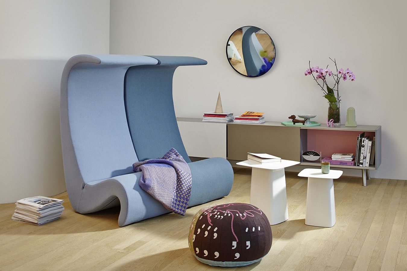 由Hella Jongerius设计的Bovist是一个装饰性地板枕头,凳子和脚凳。 奇特的刺绣图案为封面带来特别的风格,由对比色的面料缝制而成。 两侧的锥形径向接缝和紧凑的小合成珠子填充物提供了舒适的座椅,而由针织纱线制成的手柄使Bovist可以轻松地从一个地方移动到另一个地方。