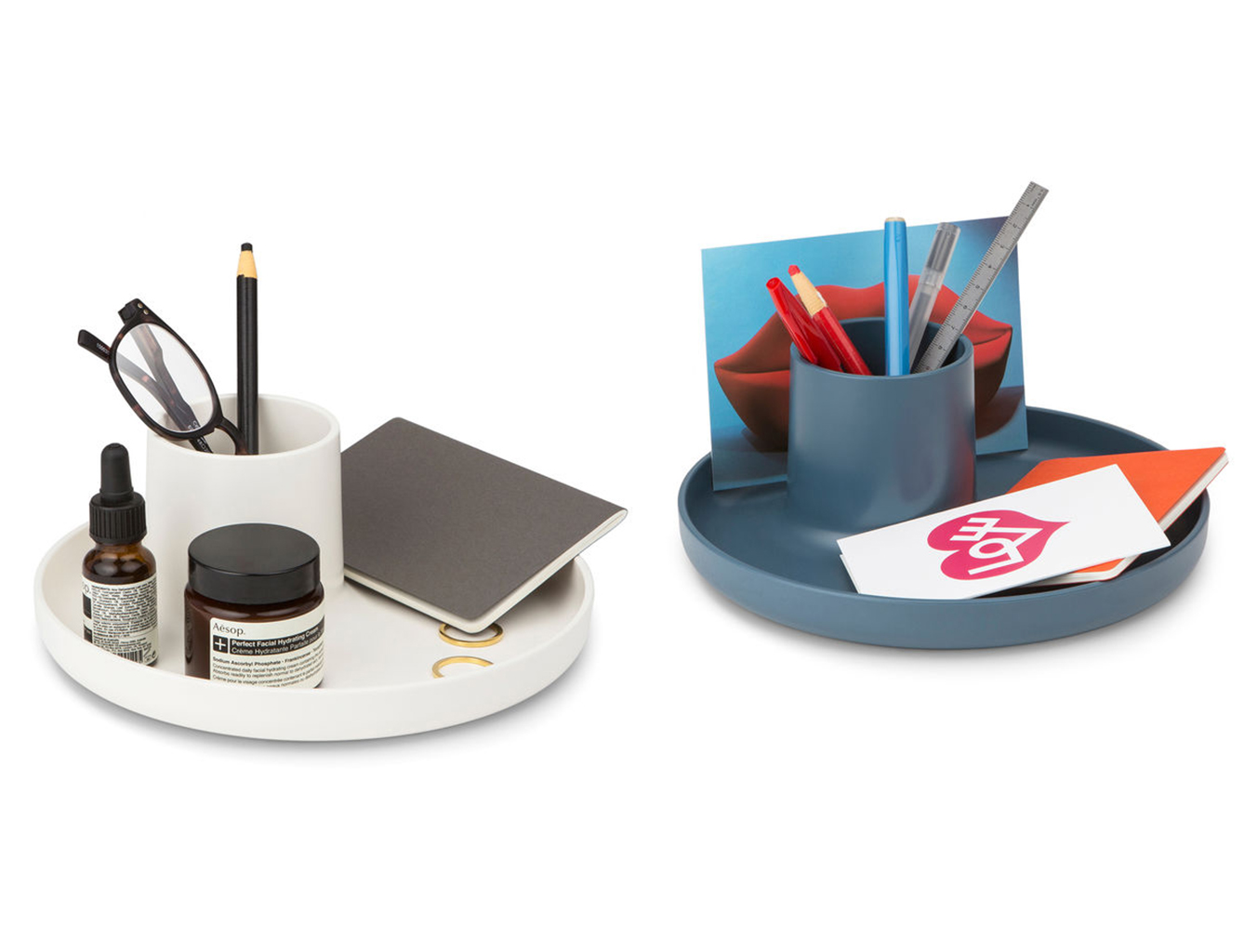 O-Tidy是一种实用的多功能存储容器。 该设计不仅提供托盘和杯子功能,而且还将其简单的形状组合成一个新的,完美比例的物体。