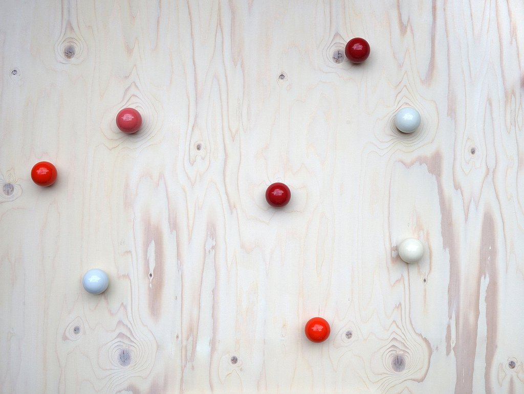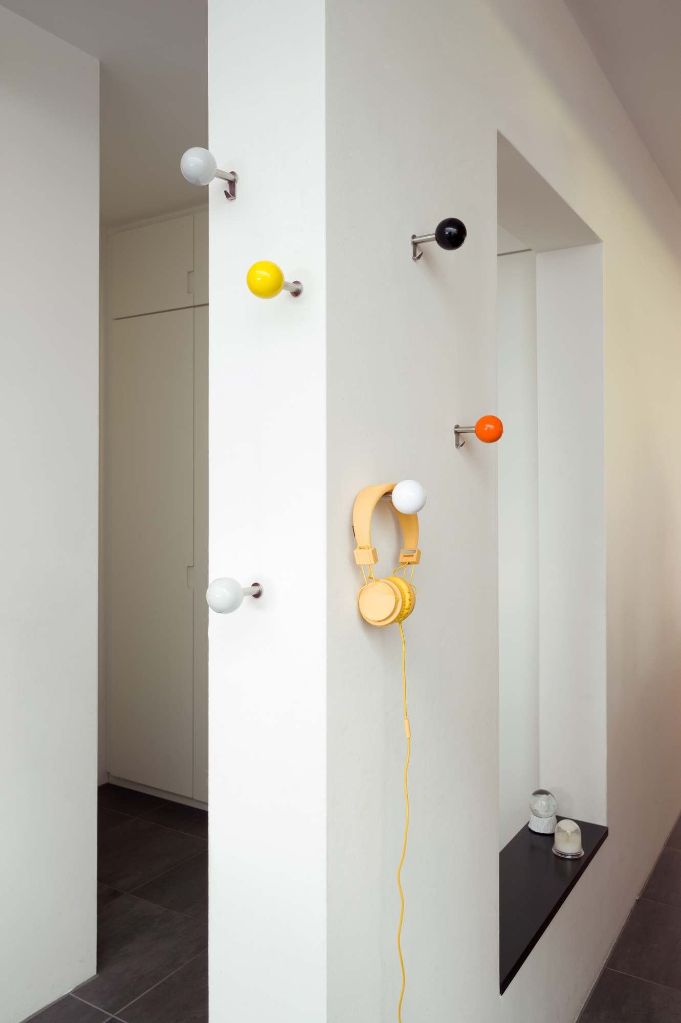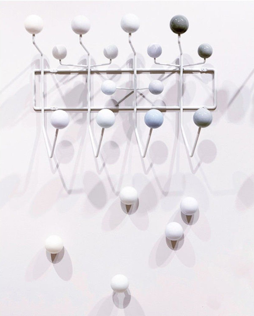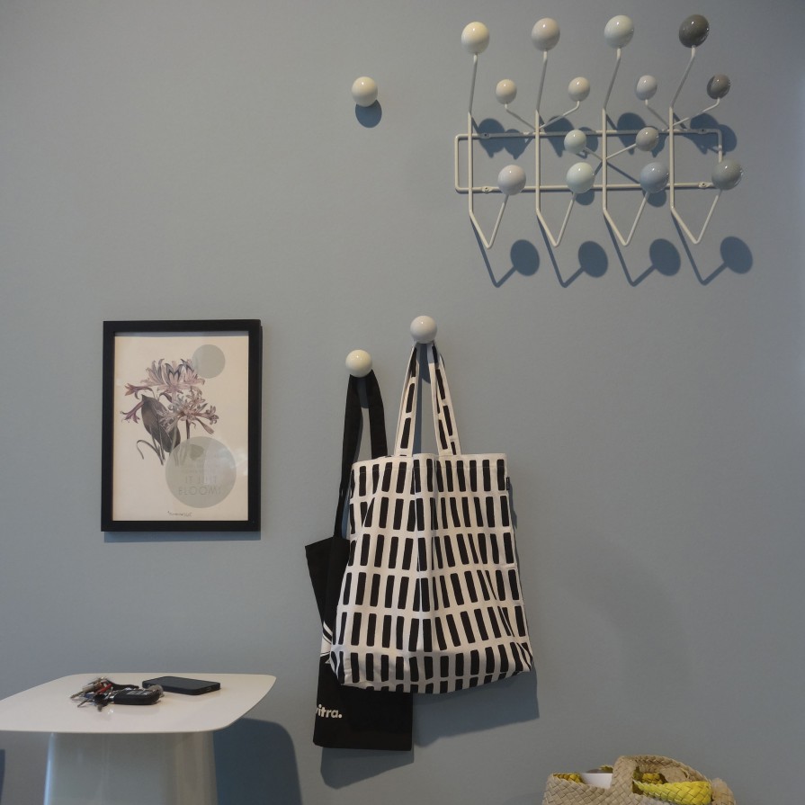 Hella Jongerius的Coat Dots安装在一个可伸缩的销钉上,可以稍微拉离墙壁,为夹克和衣架提供方便的挂钩。 同时,它们也可以简单地用作装饰墙元件。 涂层点有三种颜色协调的球,包括安装材料。