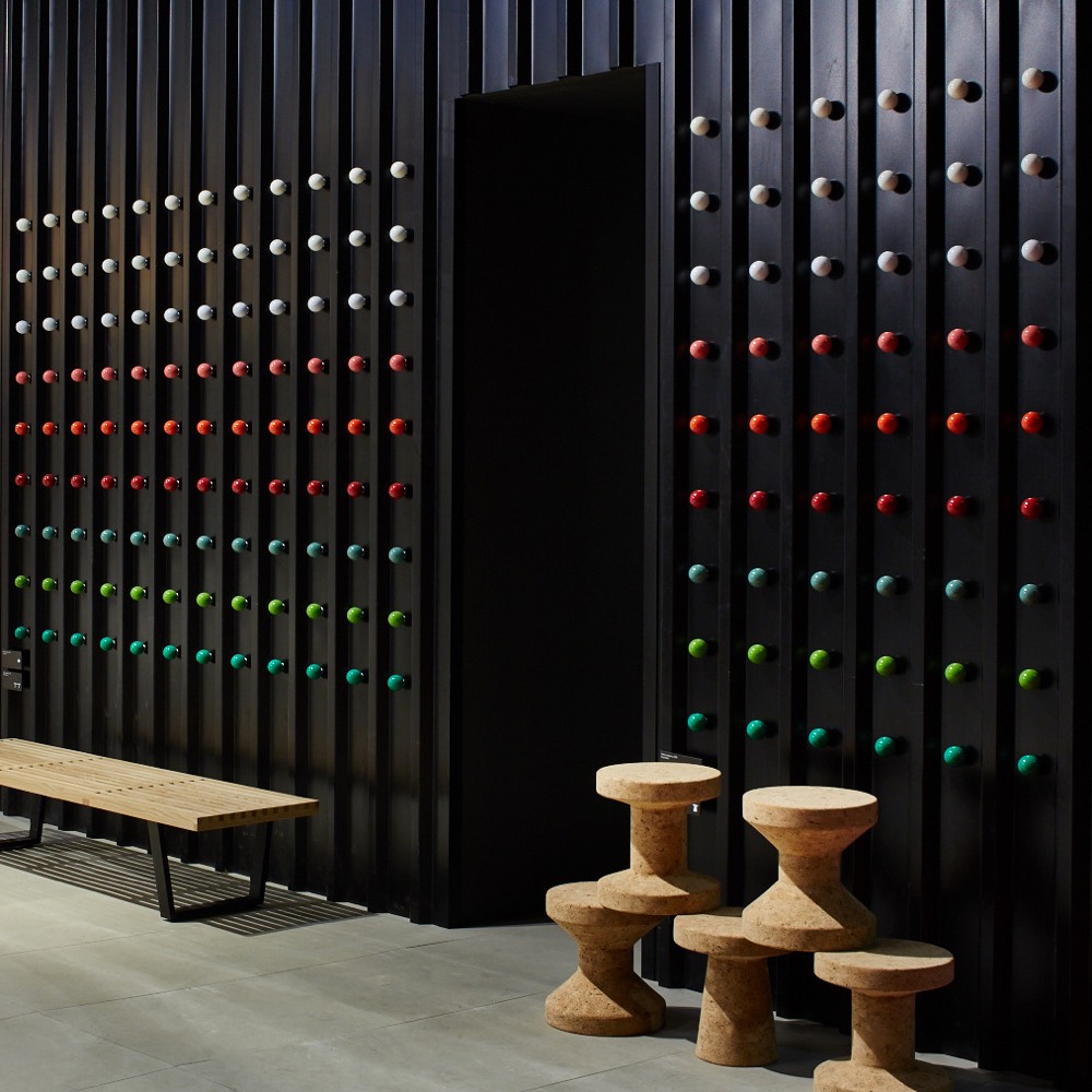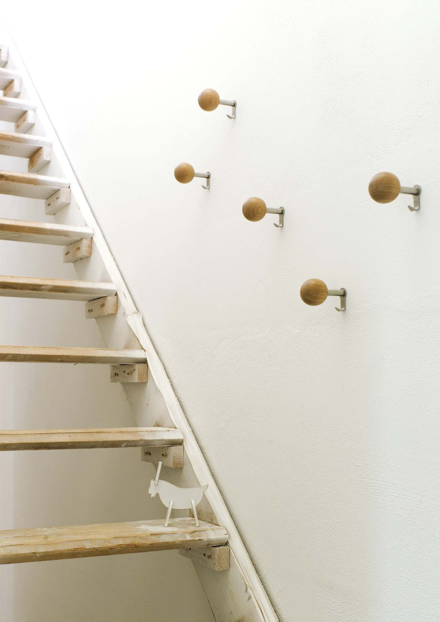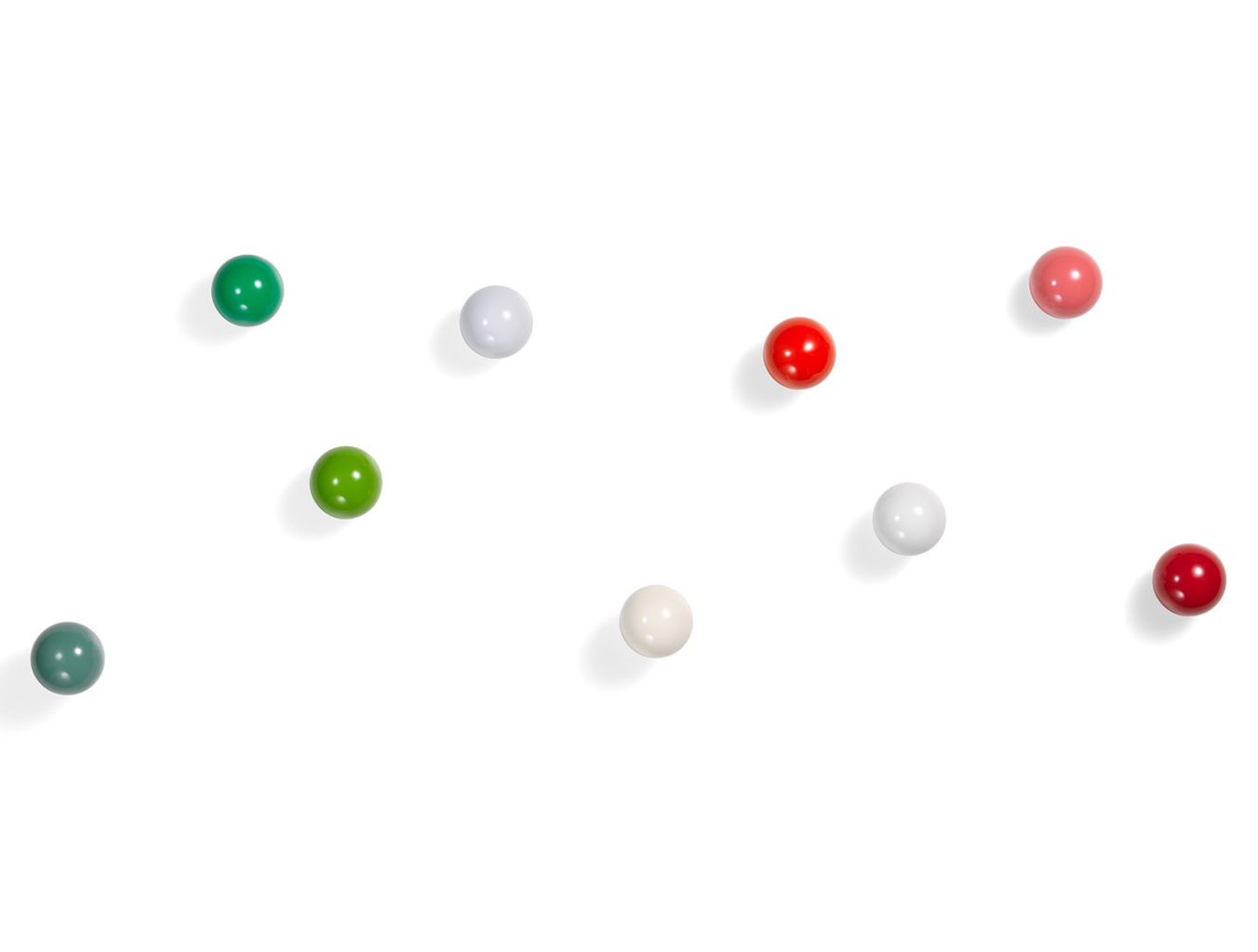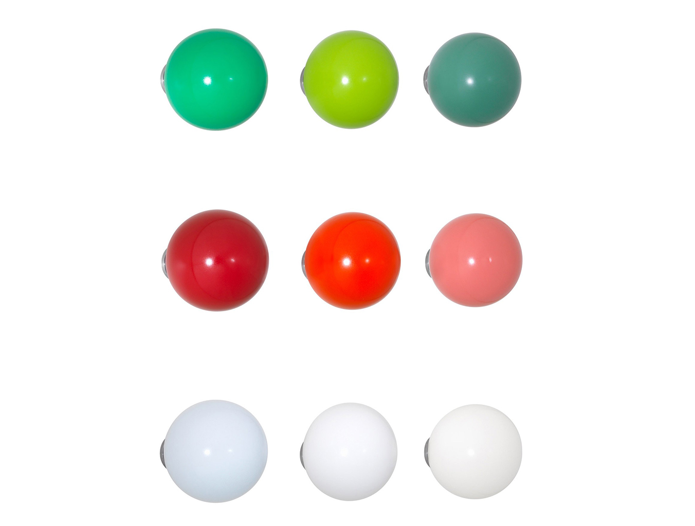 Hella Jongerius的Coat Dots安装在一个可伸缩的销钉上,可以稍微拉离墙壁,为夹克和衣架提供方便的挂钩。 同时,它们也可以简单地用作装饰墙元件。 涂层点有三种颜色协调的球,包括安装材料。