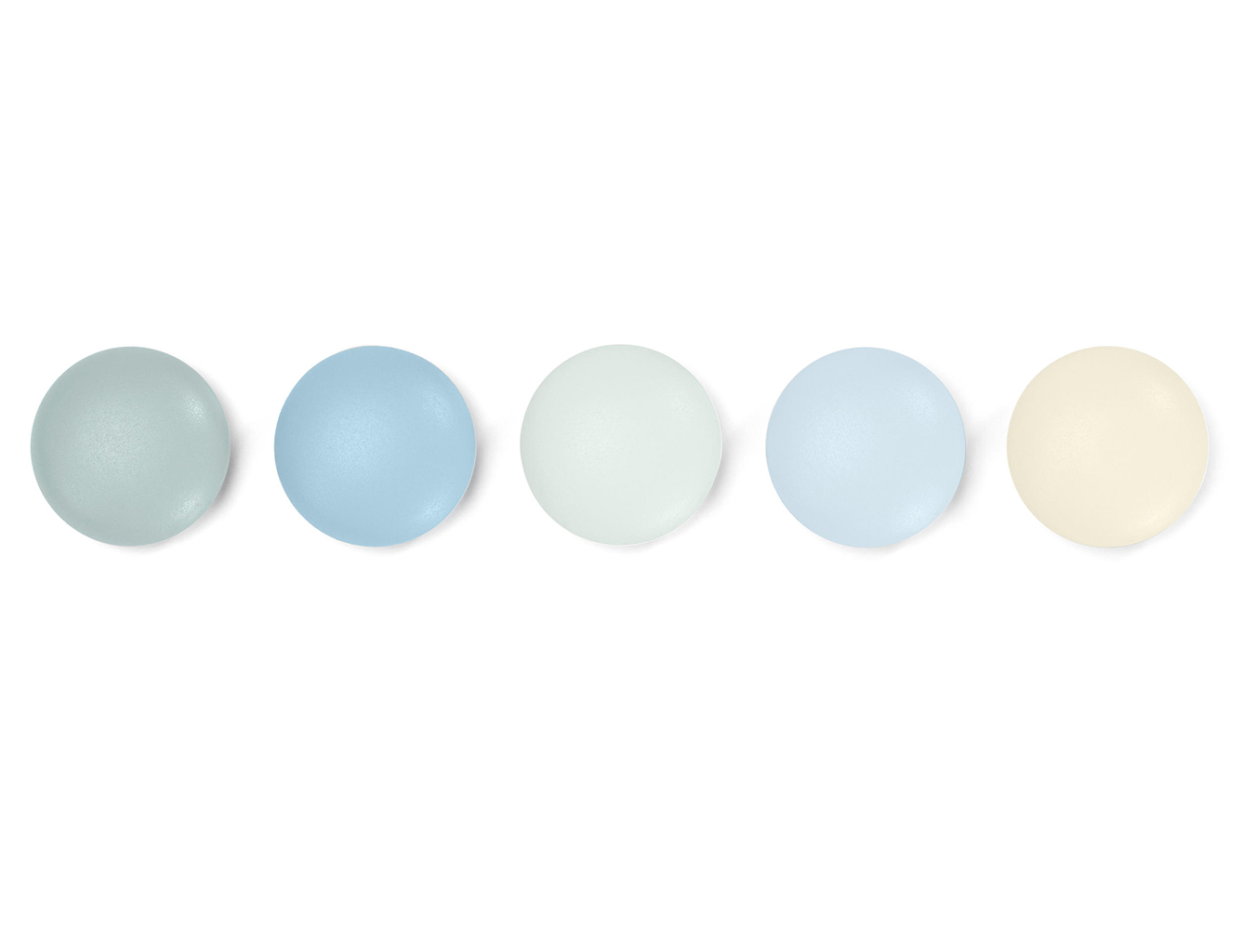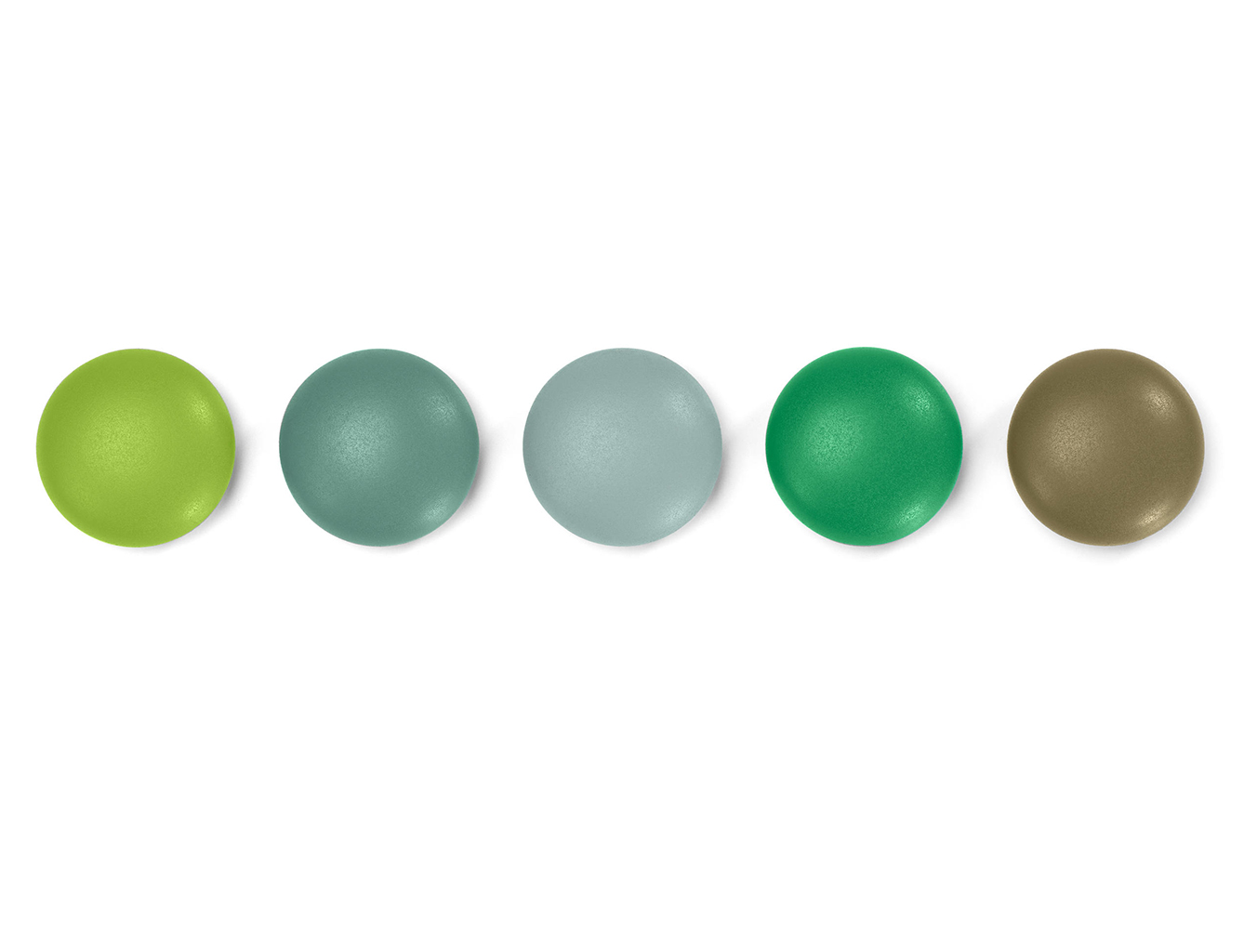 由于其有机形状的轮廓,磁铁点让人联想到鹅卵石。 带有坚固塑料盖的强力磁铁有四种不同的颜色组,每组包含五个磁铁。