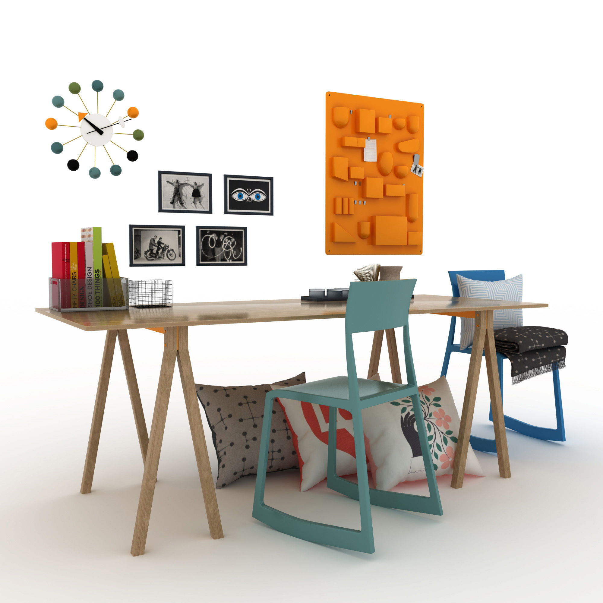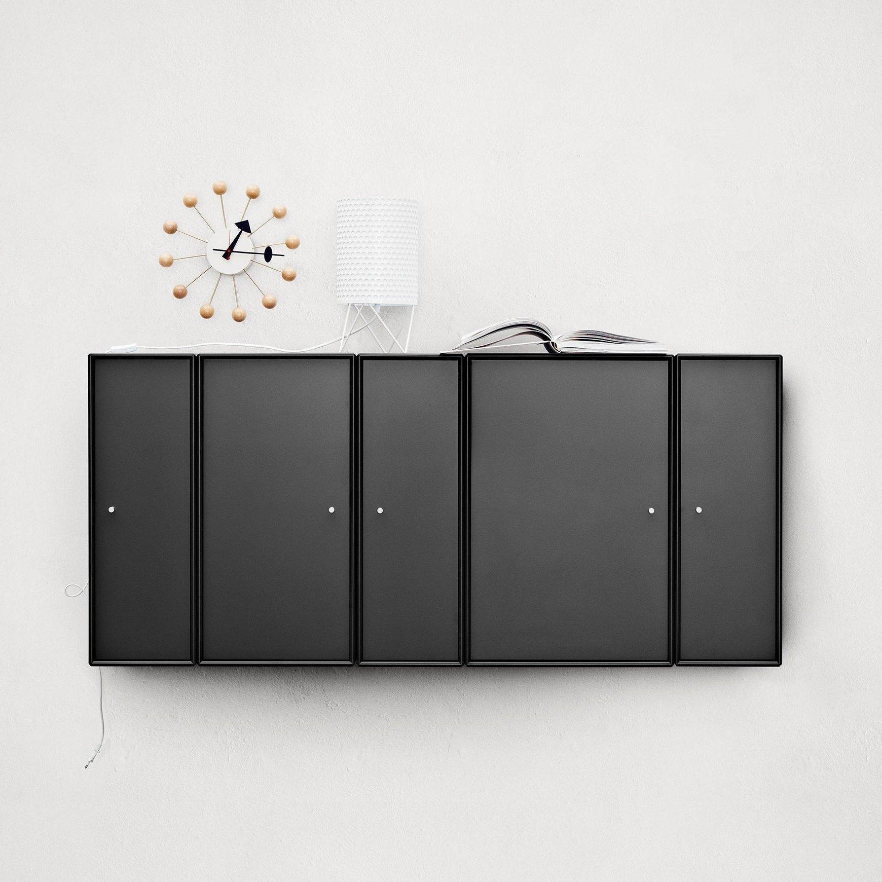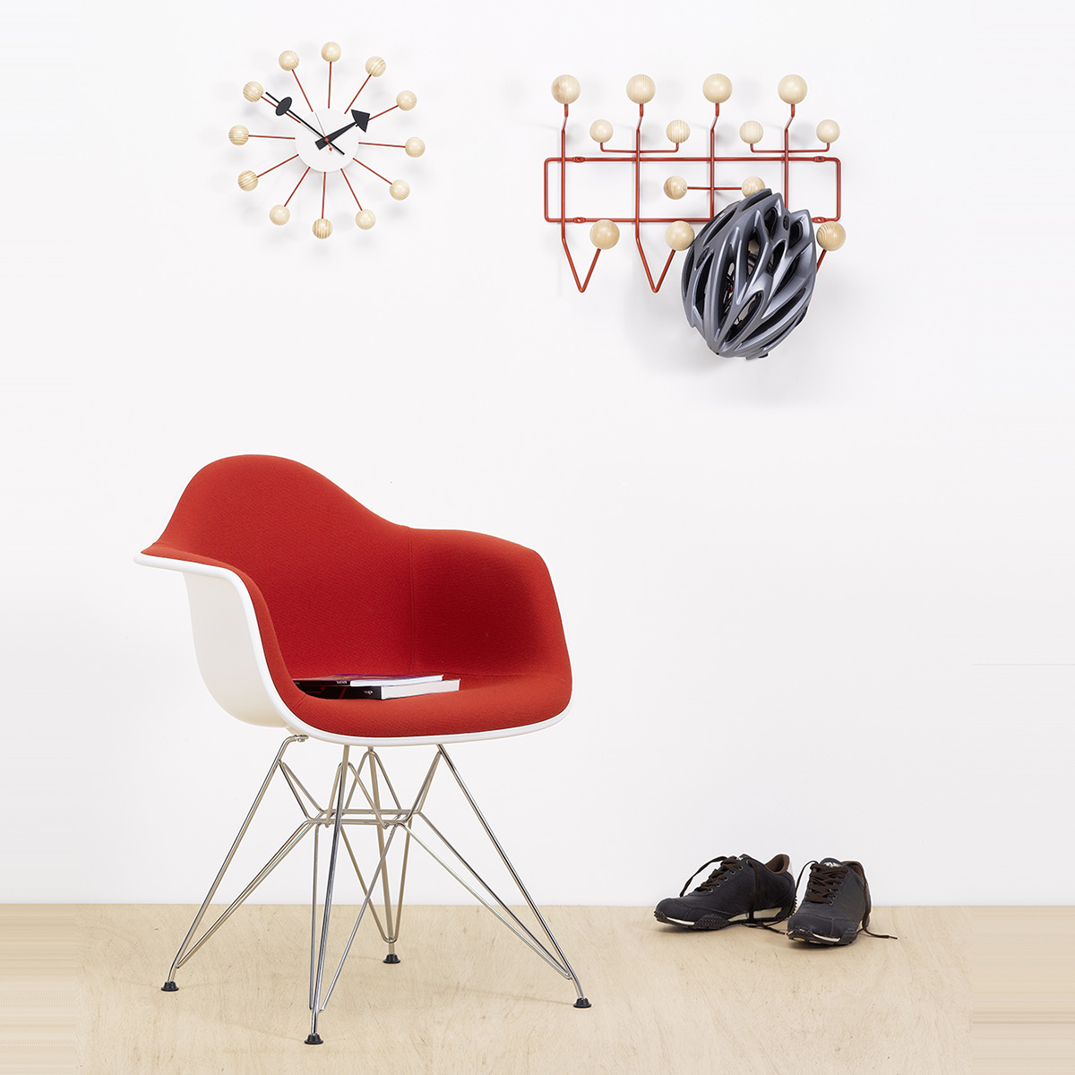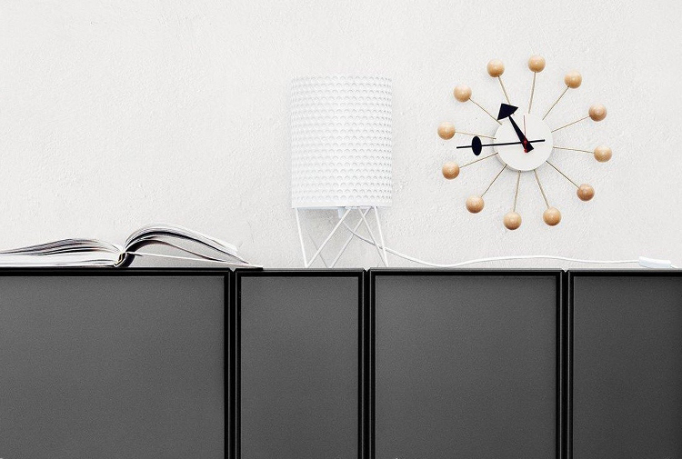 信仰进步和日益增长的经济繁荣是1950年左右美国生活方式的核心方面。一切似乎都有可能,人们努力做到“现代”。 为了将现代设计融入美国家庭,乔治·尼尔森构思了各种日常用品:灯具,钟表和其他家居饰品。 直到20世纪70年代,尼尔森办公室为家庭创造了许多不同的物品,包括泡泡灯和球钟,它们成为了本世纪中期现代设计的象征。