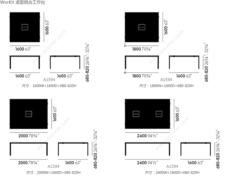 WorKit 桌面组合工作台 系列尺寸/示意图