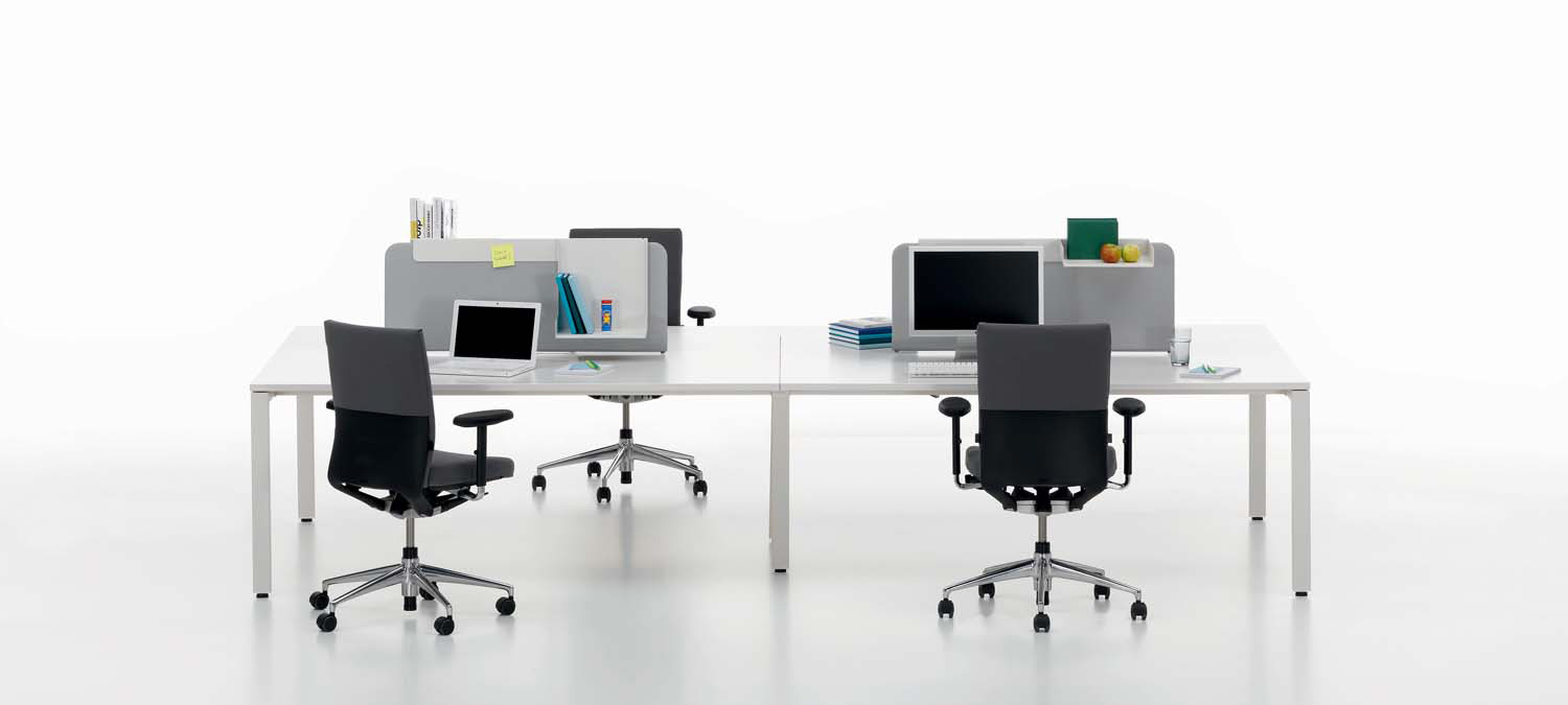 WorKit办公家具系统可用于为个人和团队创建多功能工作站。 设计巧妙,表格可轻松适应用户要求。 附加顶部允许会议配置以促进沟通,而中央和侧面屏幕将桌子分成与过程相关的工作站 - 适用于不同大小的个人壁龛或团队长椅。