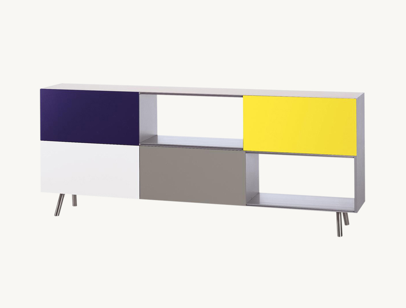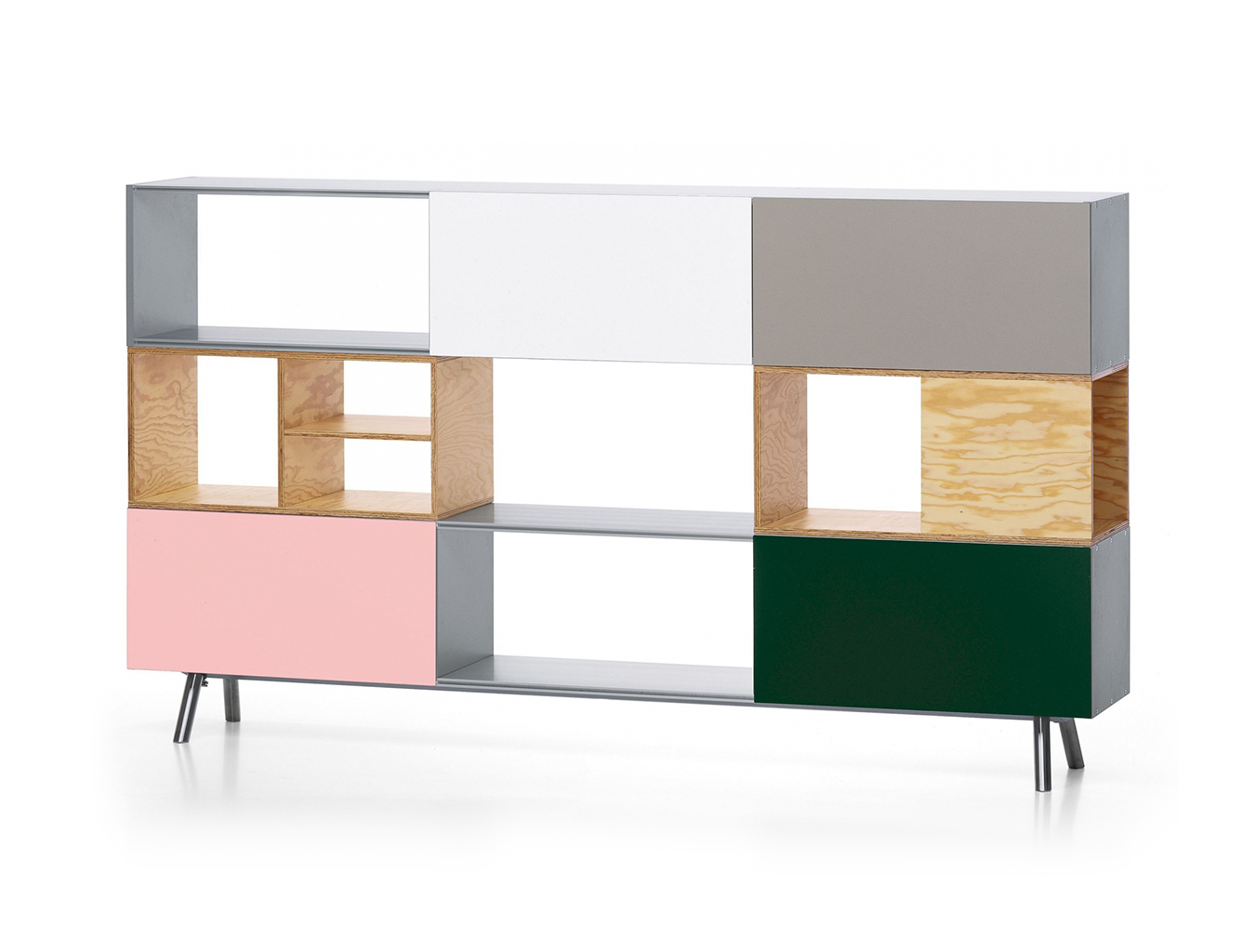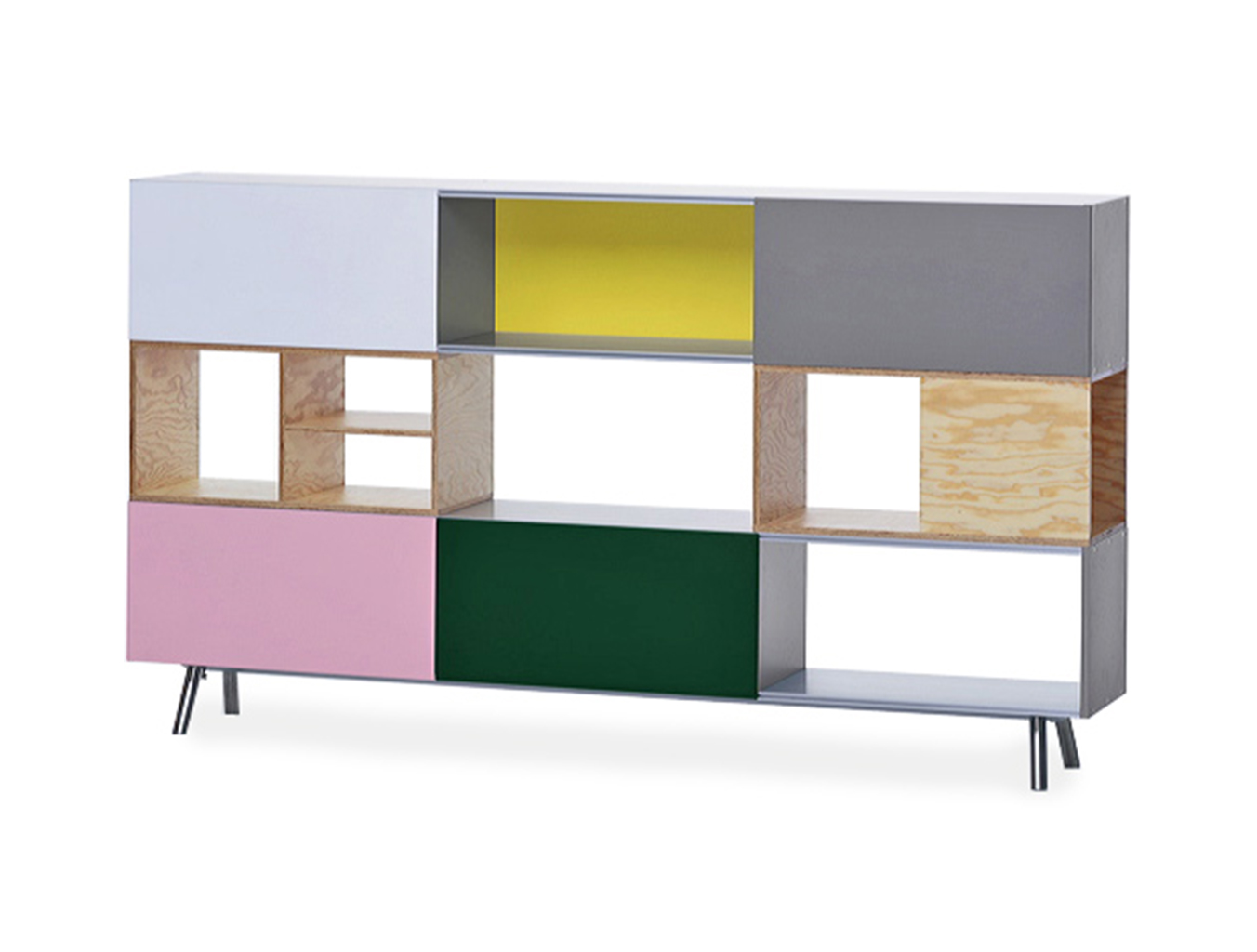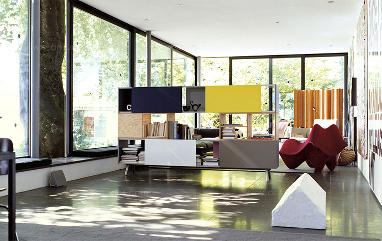 模块化结构,Kast存储单元以侧板作为基本版本开始。 对于中等高度版本,第二个基本模块放置在顶部以创建架子/壁柜组合。 在最高的版本中,添加了两个简单而坚固的木质元素。 Maarten Van Severen特别关注滑动门的颜色,这不仅强调了Kast的比例,而且给人一种清新和乐观的感觉。