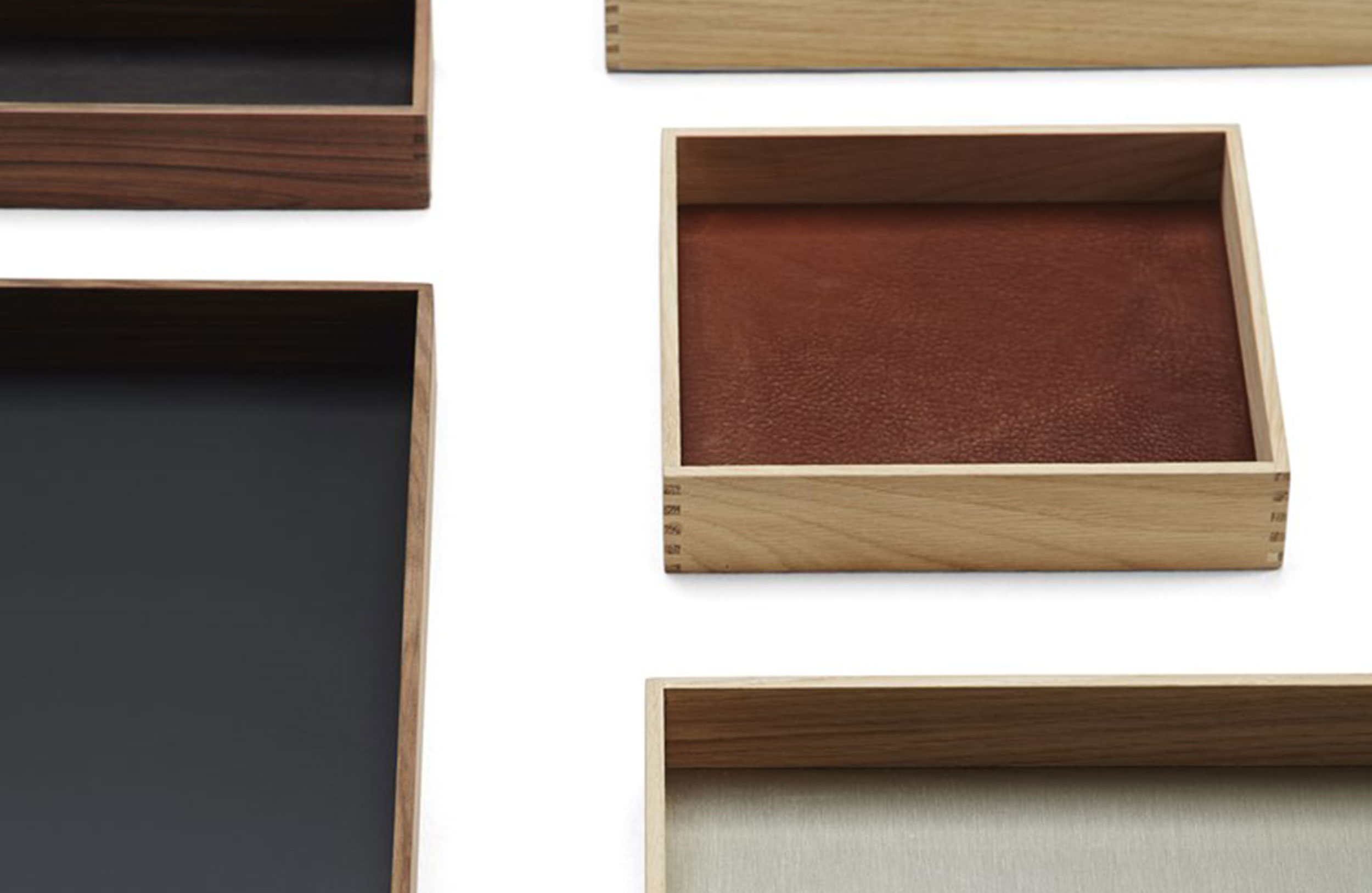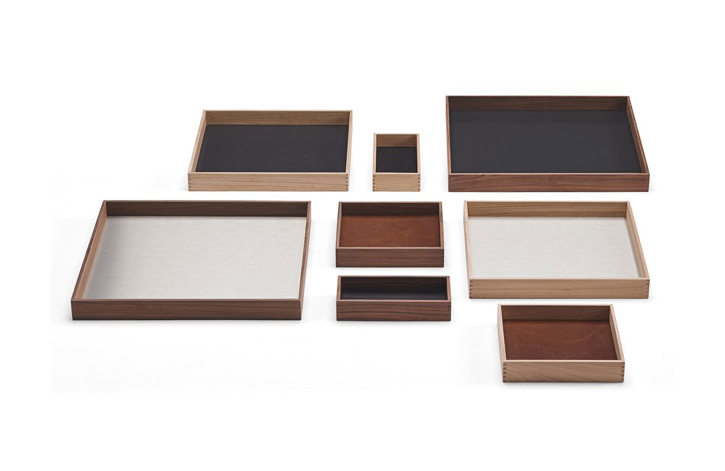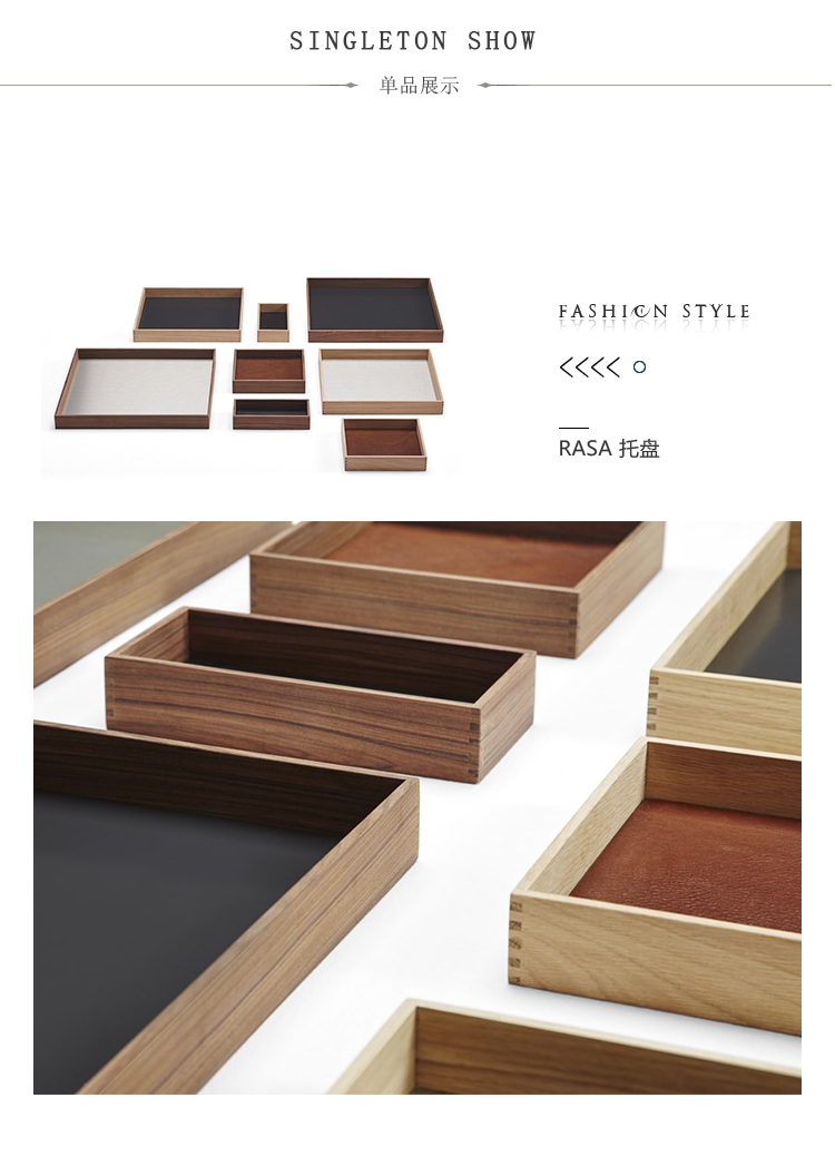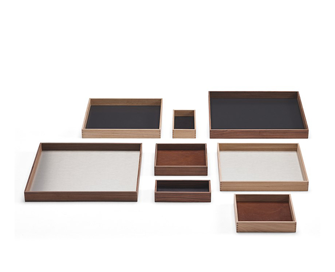 托盘。饰面,木饰面,金属或织物内饰的组合。