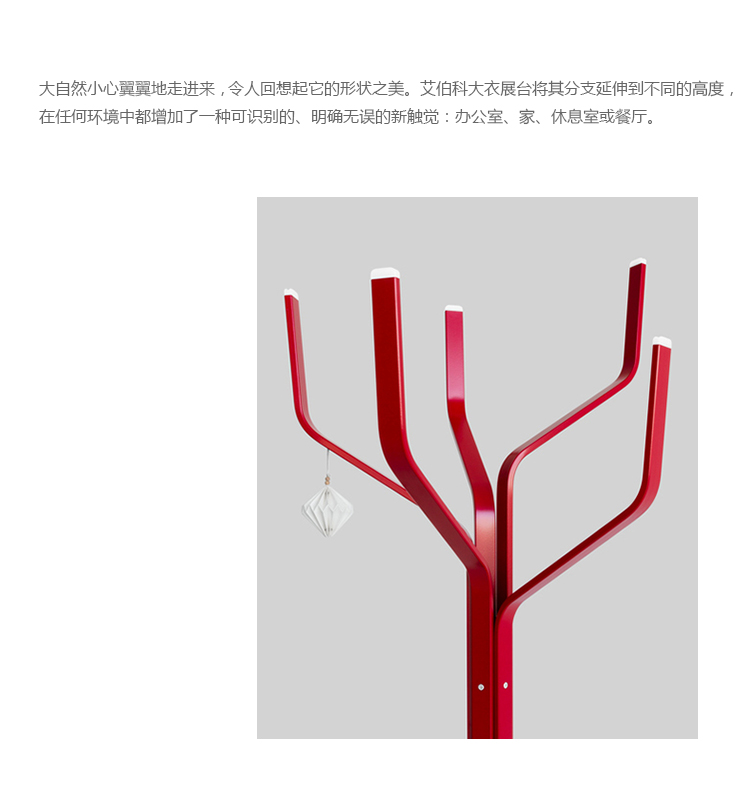 大自然小心翼翼地走进来,令人回想起它的形状之美。艾伯科大衣展台将其分支延伸到不同的高度,在任何环境中都增加了一种可识别的、明确无误的新触觉:办公室、家、休息室或餐厅。
