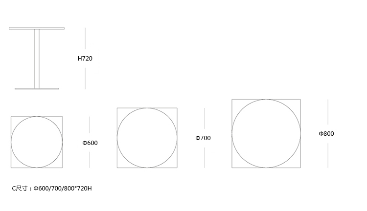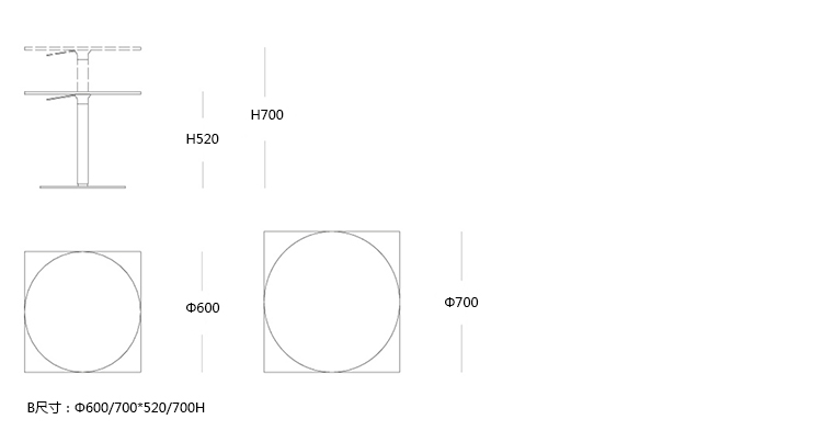 BRIO 咖啡桌/洽谈台 系列尺寸/示意图