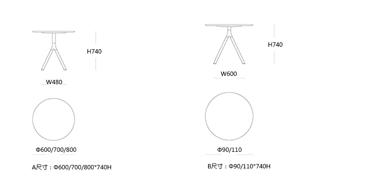FORK 咖啡桌/餐桌 系列尺寸/示意图