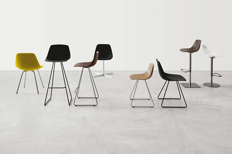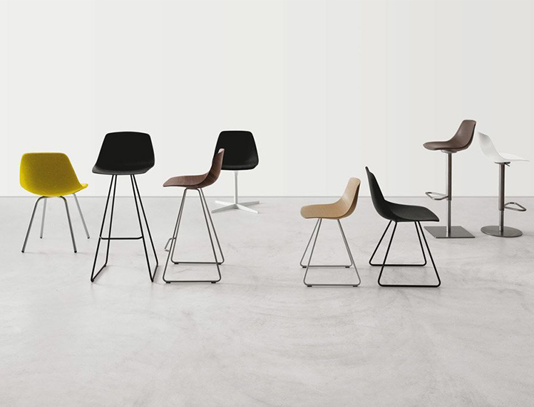 令人惊叹的木质外壳形状:MIUNN椅子和凳子-有不同的腿型和不同的高度-可轻松适应所有类型的顶部和桌子。形状支撑并伴随着靠背,而柔软的拥抱座椅线。