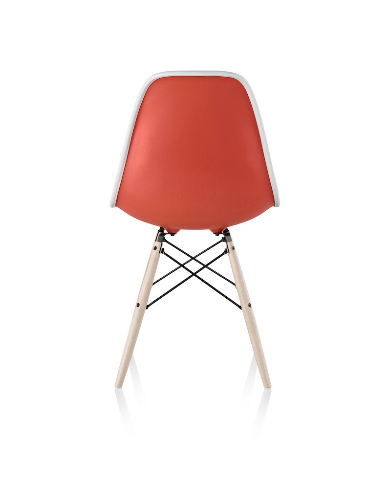 本单品为Eames Plastic Chair 系列成员之一,舒适的椅座外观设计是以添加了玻璃纤维强化的塑料来制作,再搭配上各式不同的脚座来增添使用的多样化,值得一提的是Eames Plastic Chair 的创新技术与材质,便它得以成为全世界第一张被大量制造的单椅。拜现今创新的科技所赐,全系列的Eames Plastic chair 终于再次制造,使用环保可回收的聚丙烯材质,求制作线条优美的椅座外壳,不但重量更轻,同时更具有更好的耐热性及抗化学性。