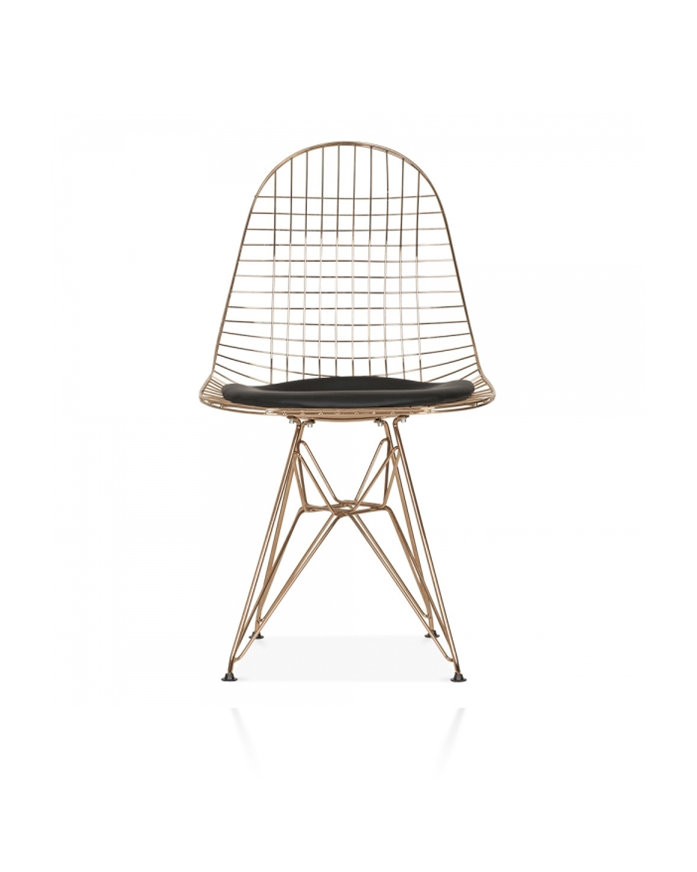 DKR 單椅結合了 Wire Chair 的網狀金屬椅座搭配鐵塔椅腳。