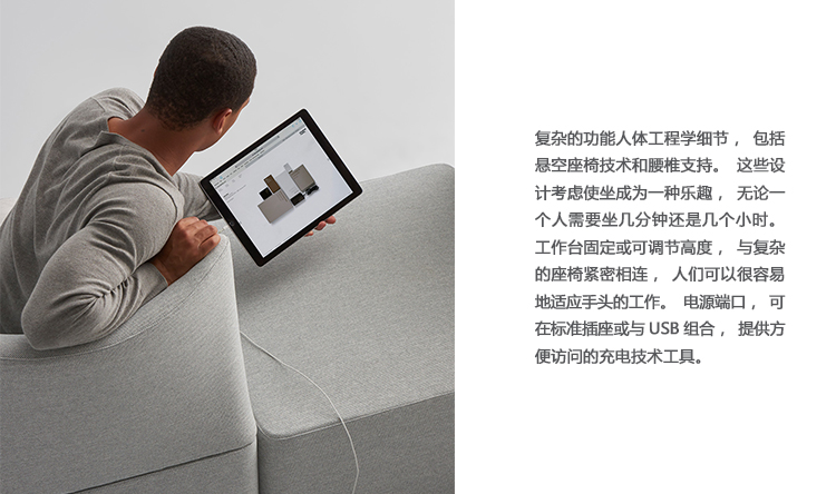 复杂的功能人体工程学细节,包括悬空座椅技术和腰椎支持。这些设计考虑使坐成为一种乐趣,无论一个人需要坐几分钟还是几个小时。工作台固定或可调节高度,与复杂的座椅紧密相连,人们可以很容易地适应手头的工作。电源端口,可在标准插座或与USB组合,提供方便访问的充电技术工具。