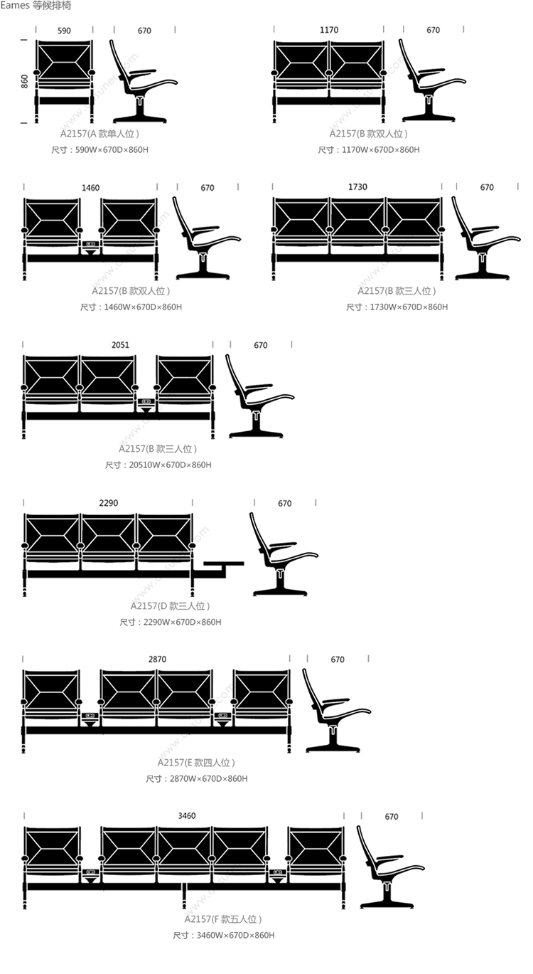 公共座椅|机场椅|办公家具|设计师家具|伊姆斯串联吊索等候排椅