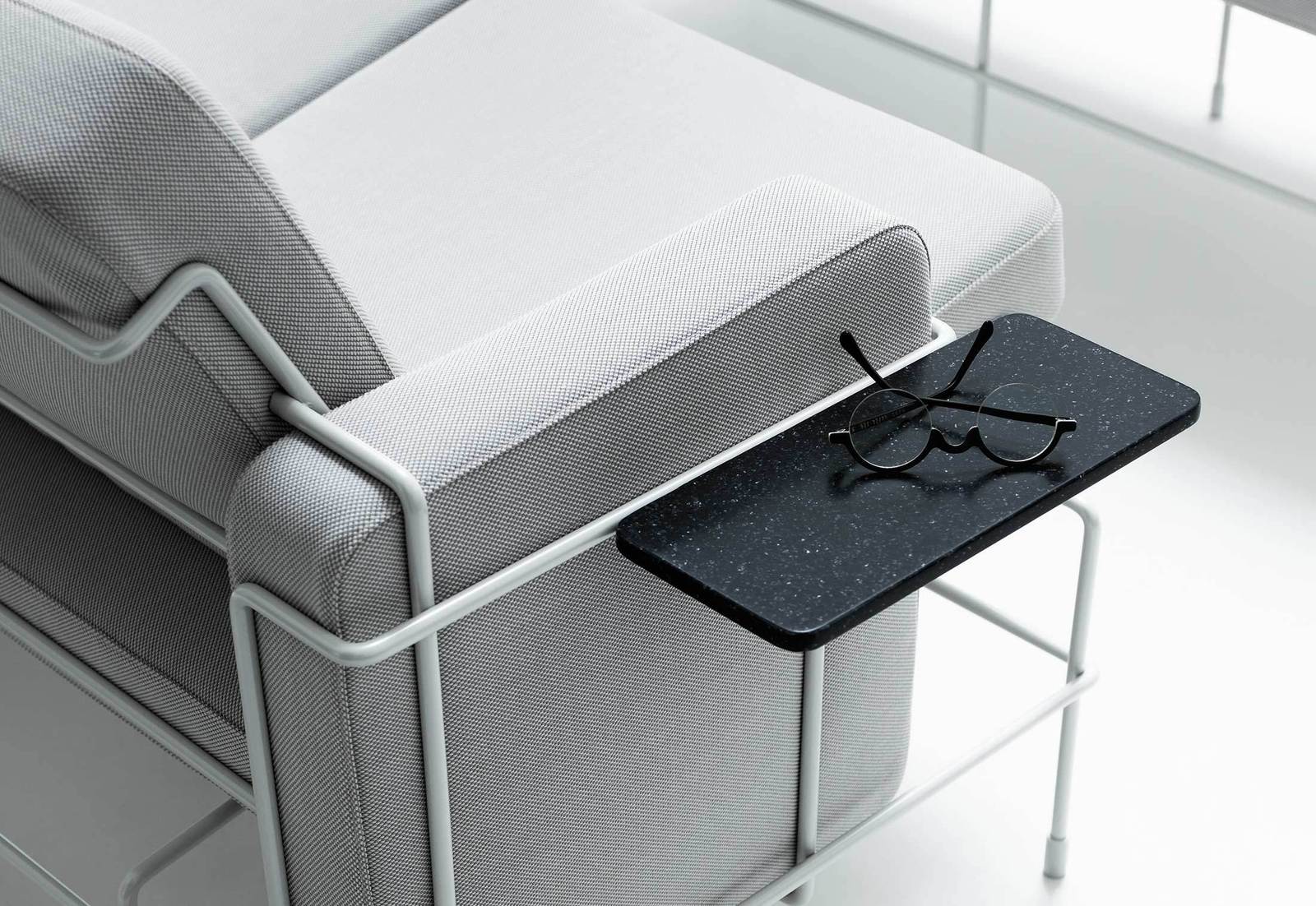 Grcic按比例播放,扩展了交通理念,创造了不同座位形式的词汇:扶手椅,沙发,长椅和躺椅。 后来,他扩展了这个概念,创造了低矮的桌子,可以选择看起来漂浮在角形金属框架上方的石头。