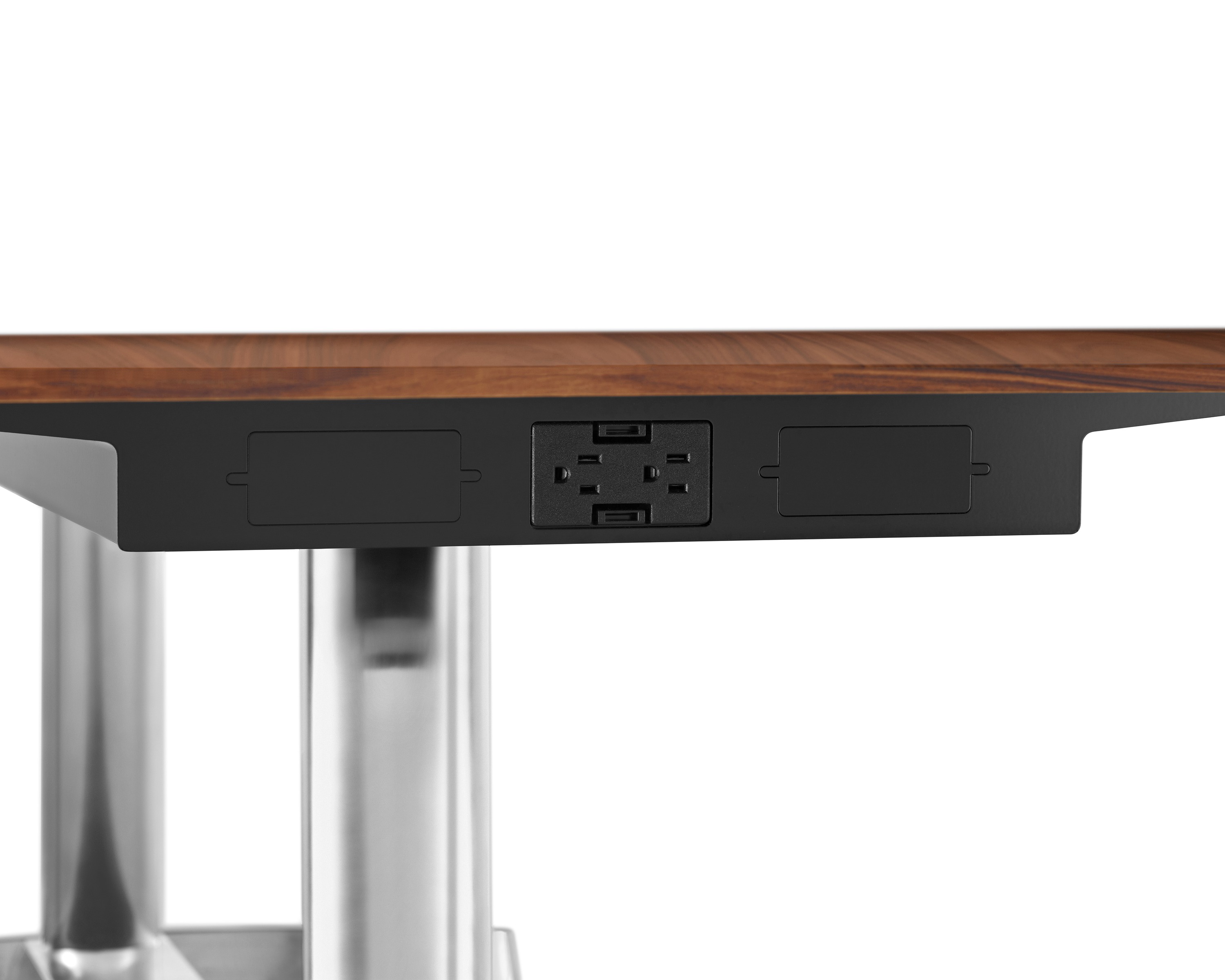 通过一项能够反映人与技术的互补联系的解决方案解决能源需求的问题。可选的托盘包括四个简单的插座,可以方便地从桌子底下拉出来,还可以在无损桌子的视觉整体性的前提下添加或拆除。AGL桌子系列有各种各样的尺寸和材质可供选择,无论应用到哪种场合,其优雅的外型都能与周围环境相得益彰。