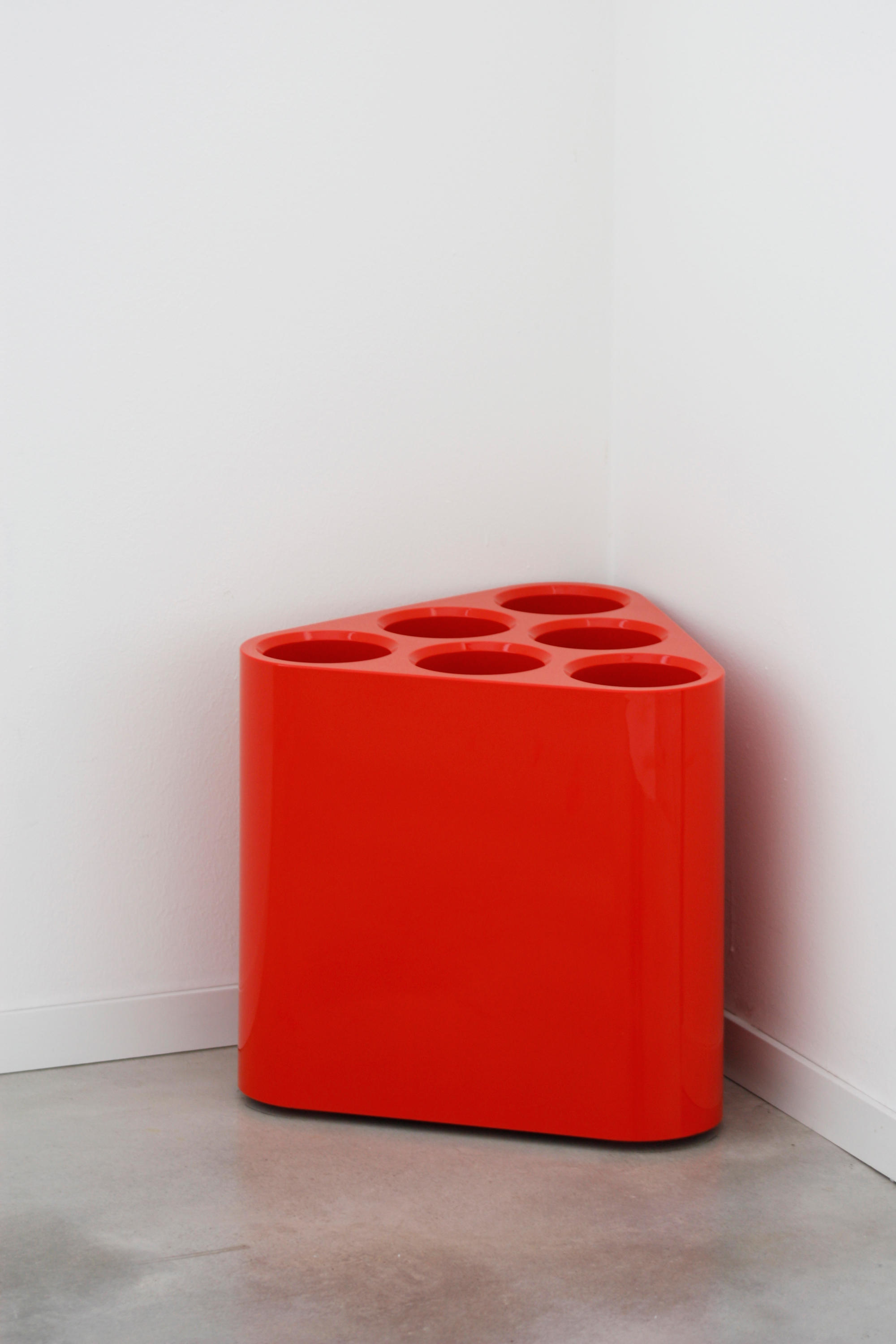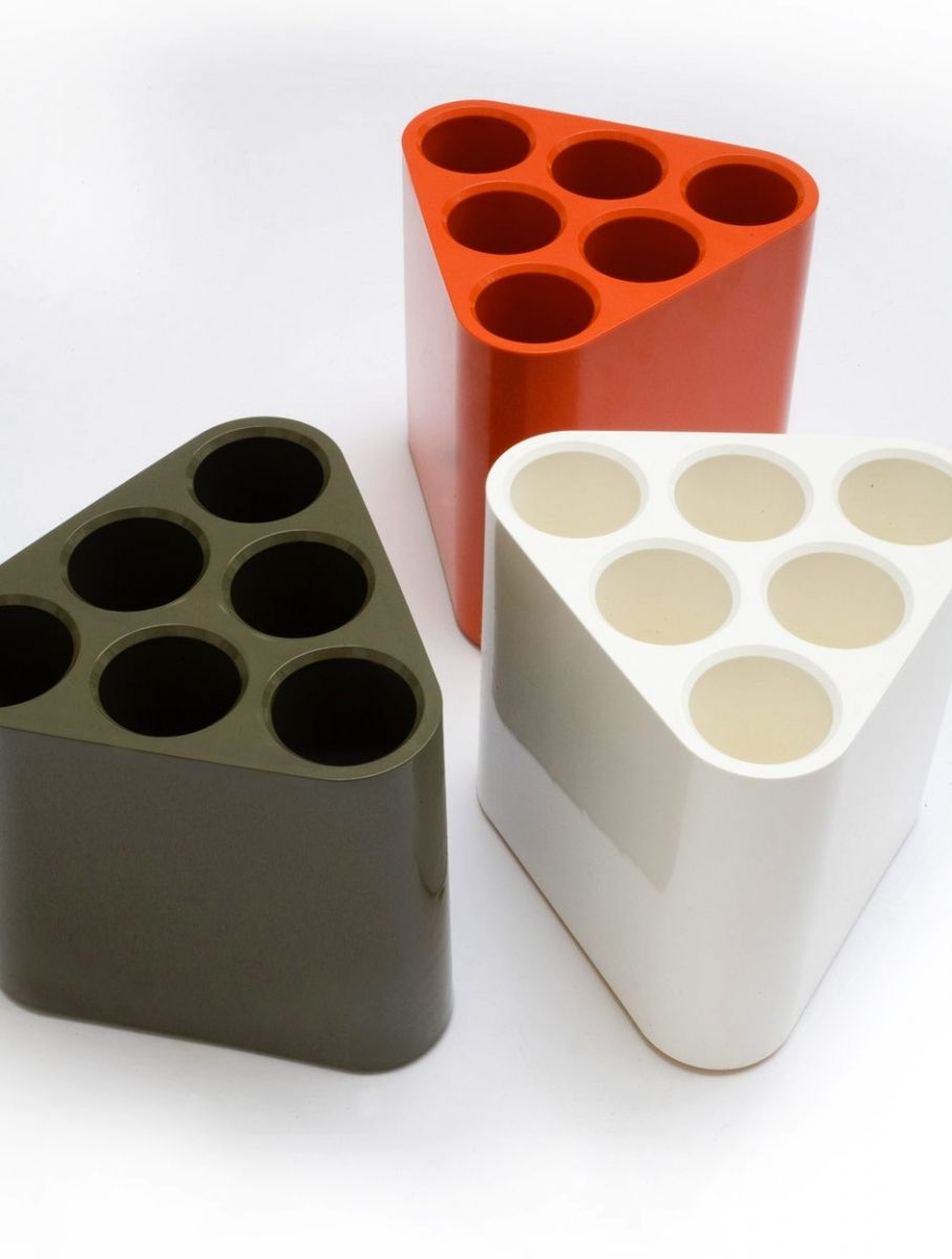 Magis的伞架允许长而短的雨伞在雨中冲入时容易弹出并存放。 其紧凑的尺寸和三角形的形状使其易于放置在入口通道或走廊中。 有橙色,白色和黑色可供选择。