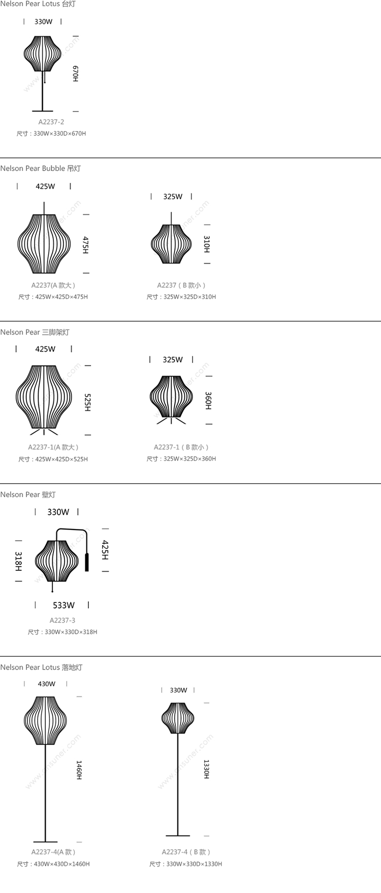 Nelson Pear Lotus 系列尺寸/示意图
