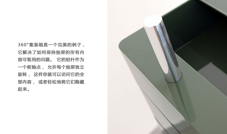 Konstantin Grcic的360°Magis集装箱是一个非常简单且高度移动的存储解决方案,它跟上当代工作和生活空间的步伐。容器的抽屉单元旋转到360度打开,脚轮允许方便的移动性。