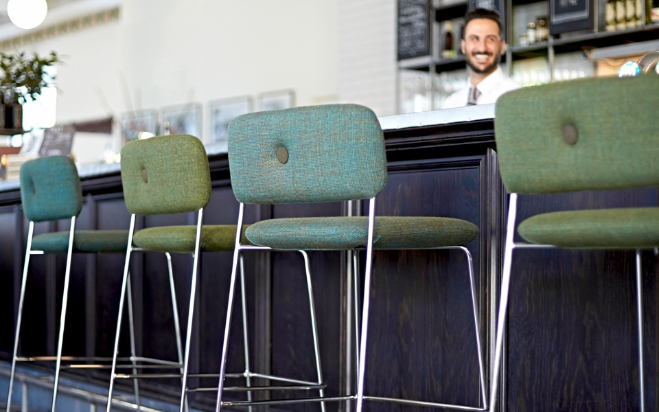 Dundra吧椅 -Dundra吧椅围绕着铬钢框架构造,然后模制座椅,然后进行软垫装饰。Dundra吧椅是需要吧椅的理想场所。铬钢框架。模制聚氨酯泡沫座椅。织物塑料支脚。绿色铬(铬III)。承包工程和项目也可提供其他饰面。也提供带CMHR泡沫的版本。座椅高度820 mm。