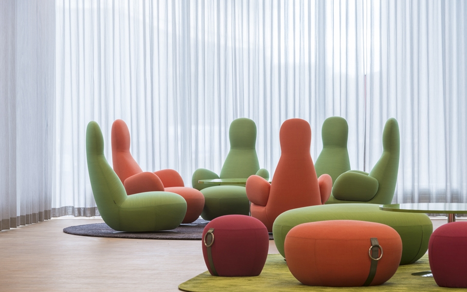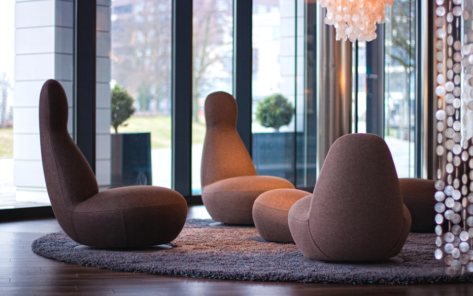 OPPO 是一个旋转的安乐椅栖息的房间,即使没有一个人。软形状邀请你无话进行交流。OPPO是在一个小的和一个大的版本,有或没有扶手。 OPPO的兴旺几乎无处不在; 机场,等候区,酒店,休闲会所,图书馆和其他许多地方。