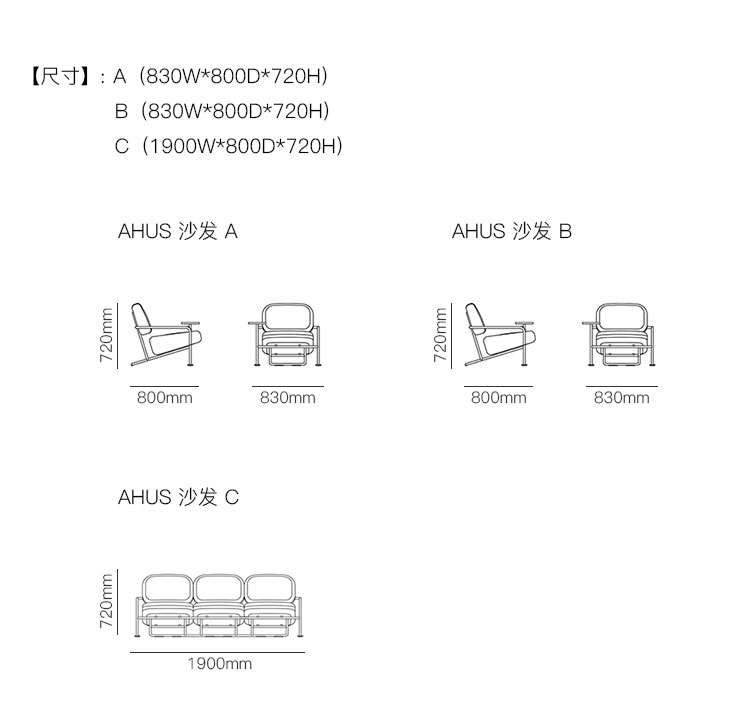AHUS 沙发 系列尺寸/示意图