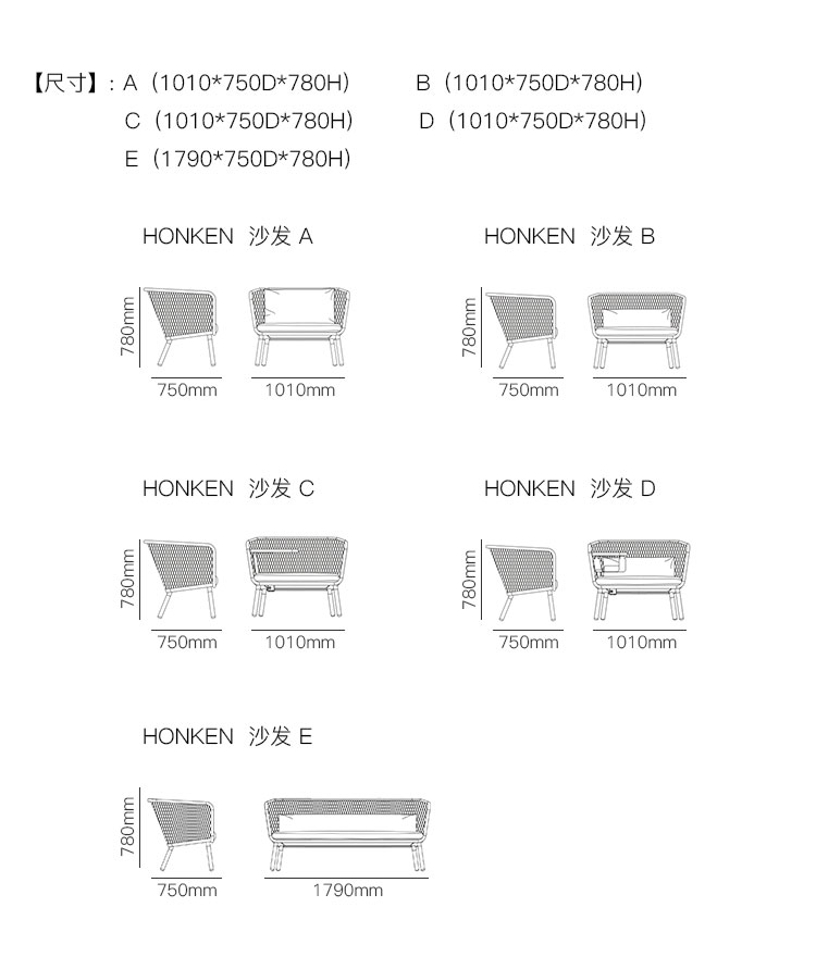 HONKEN 沙发 系列尺寸/示意图
