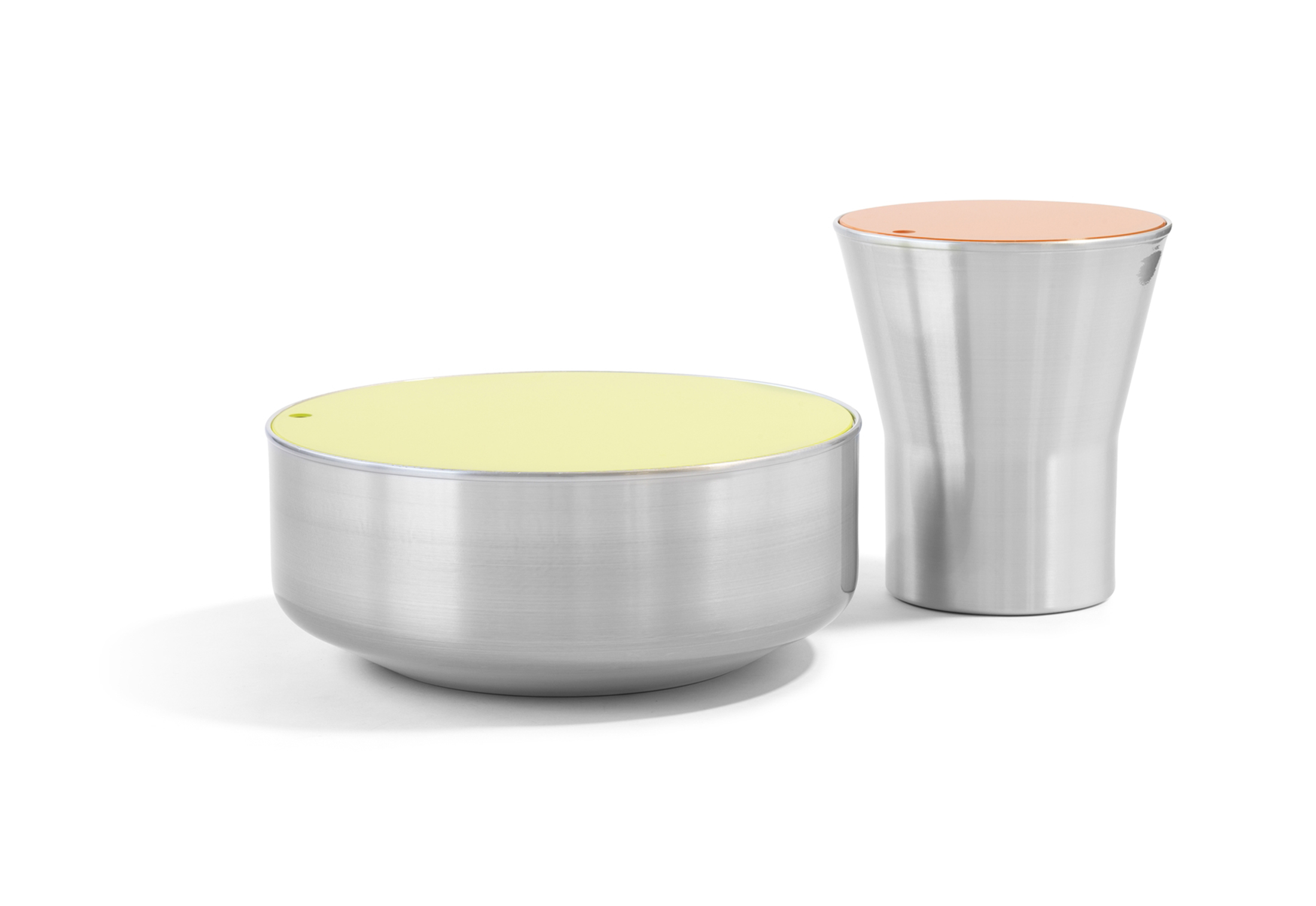 Mono -Mono是用旋转金属制成的小型茶几/边桌,两面都贴有可逆的玻璃桌面,因此您可以轻松地改变桌子的外观。在玻璃顶部下方的桌子内部有存储空间。 Mia Cullin的Mono灵感来自于各种日常容器的形式和功能,例如花瓶,碗碟,碗,圆筒和盆。可翻转,双层铝制桌面。桌面下方可存放的空间。更大的直径。带漆面漆(白色或黑色)的纺铝。玻璃化玻璃桌面。橡胶软木地板保护套。