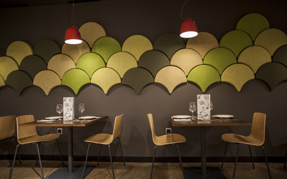 银杏是一种吸引人的吸音解决方案,将日本传统与欧洲当代风情融为一体。银杏激发您梦想大自然,并将世界上最令人惊叹的风景带入您的室内环境。银杏在多云的天空中冬天或秋天时一片森林。仅仅通过改变颜色,这种简单的形状就可以变形为数以百万计的鼓舞人心的风景。银杏吸音板可减少室内噪音和回声。银杏安装在。壁在吸音板热压100%聚酯形式毛毡标准颜色:。灰白色,浅灰色,灰色,无烟煤表面可在其它颜色被层压