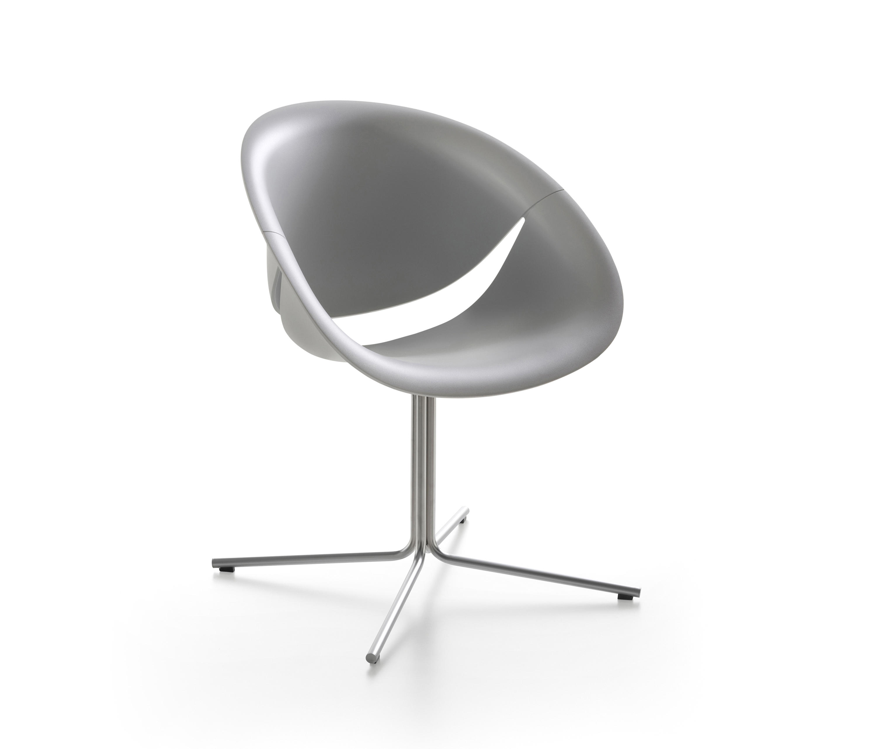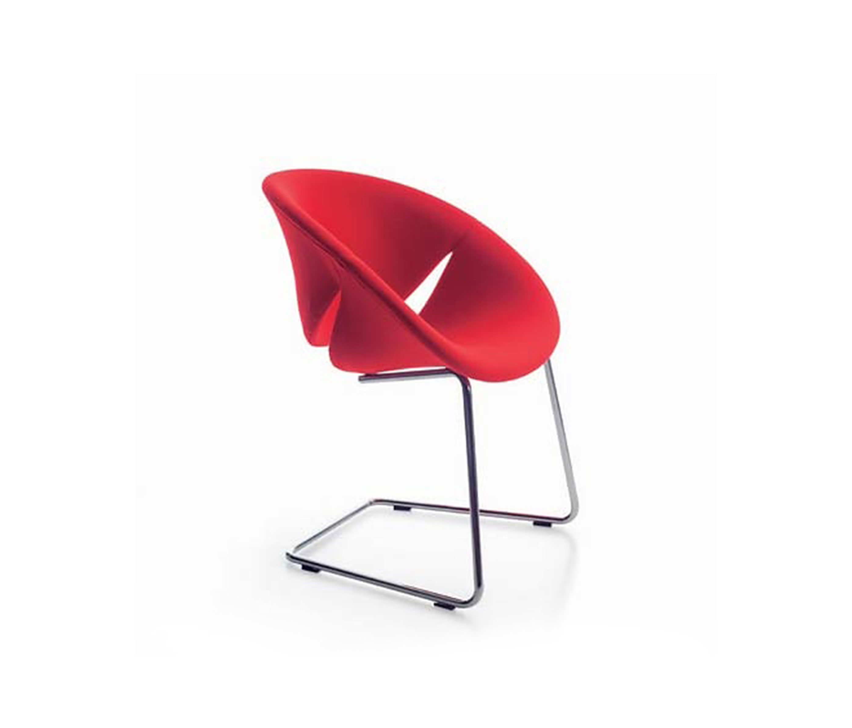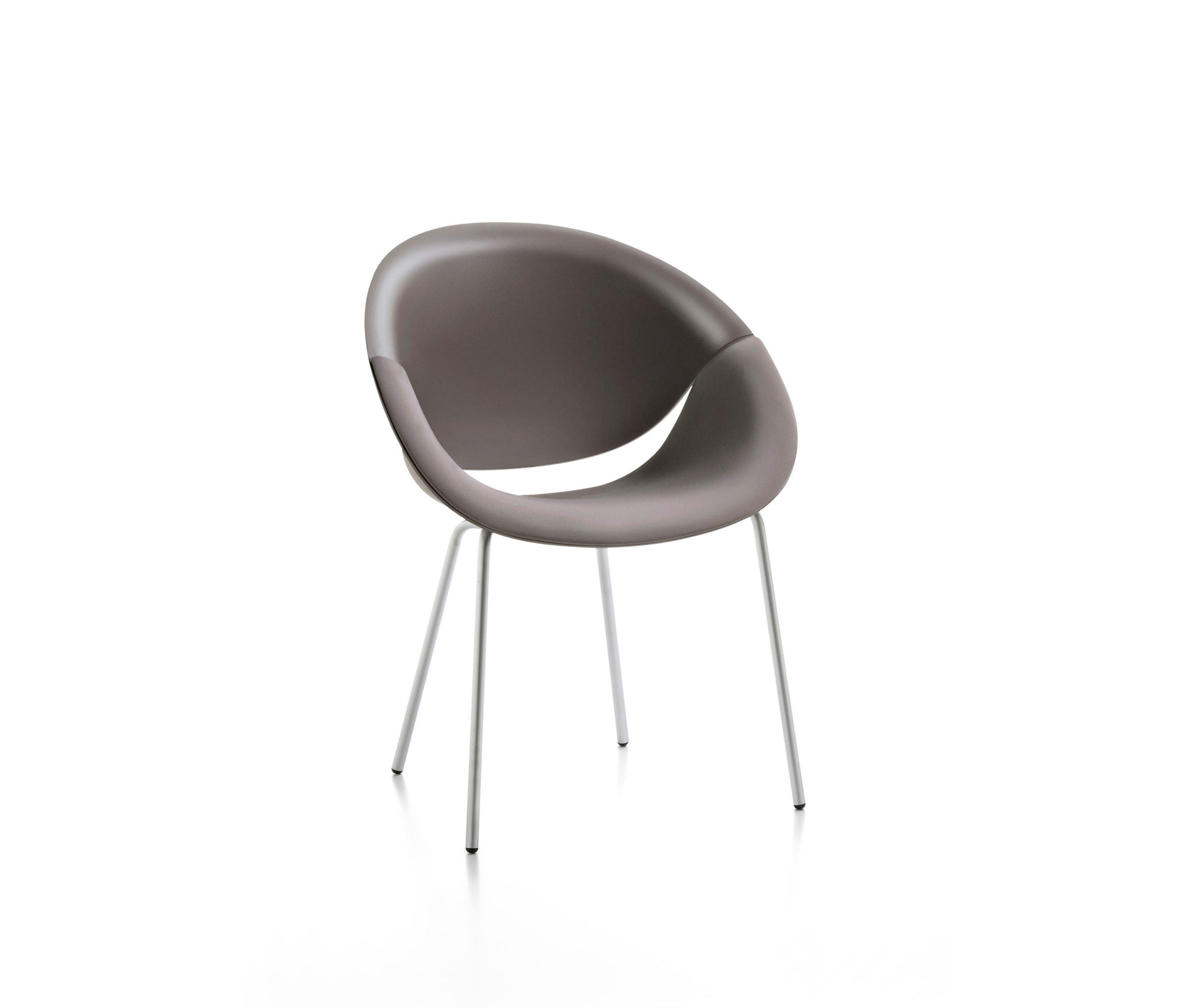 这把椅子的座椅和靠背组合在一起,露出微笑。如此幸福属于有趣的家庭想象,甚至更让人联想到彩色和覆层组合的多种可能性,从而可以个性化描述每种类型的环境。