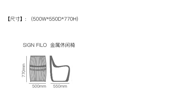 SIGN FILO 金属休闲椅 系列尺寸/示意图